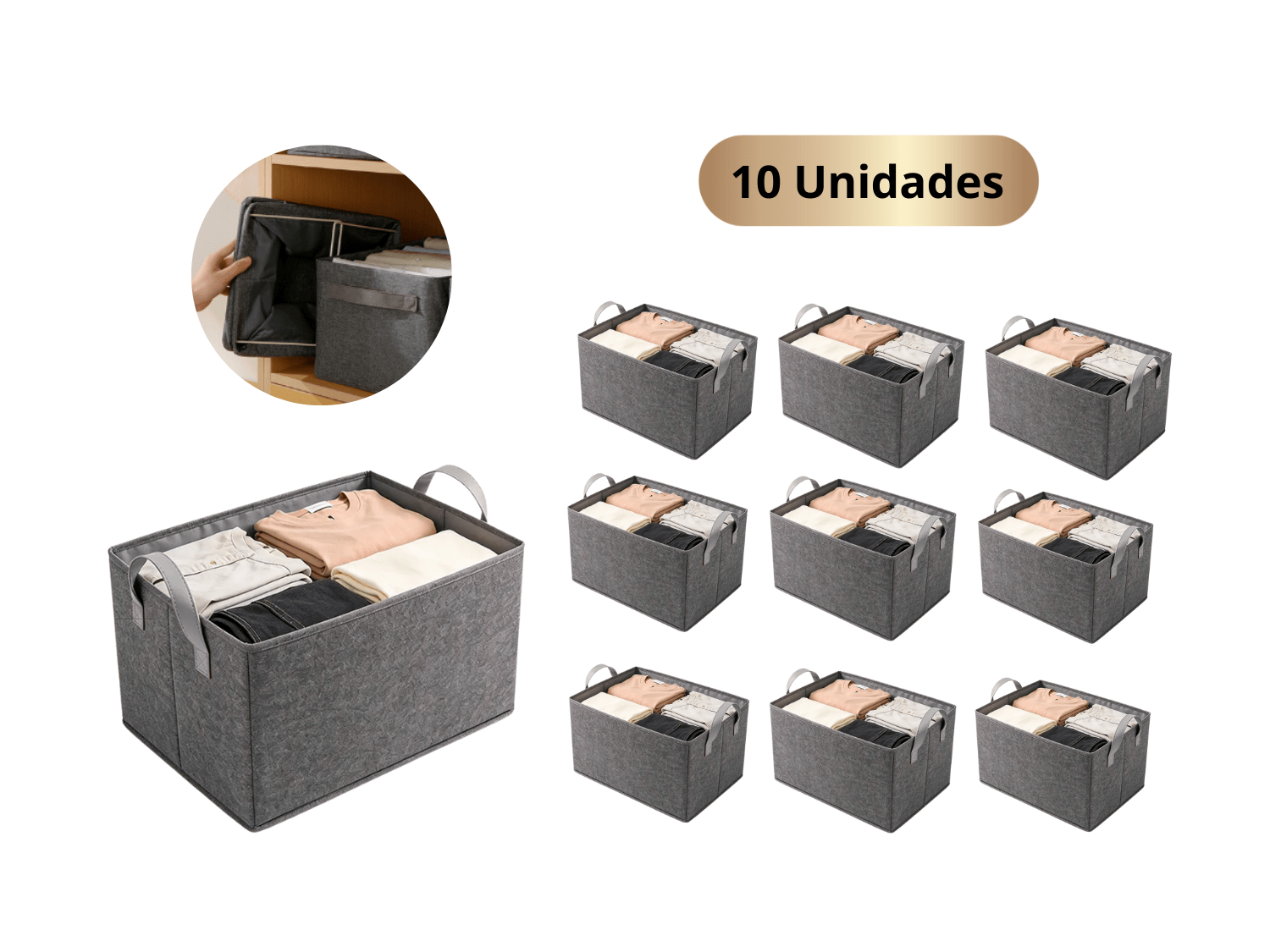 Kit 10 Cestos Organizadores Multiuso Dobrável – Cinza