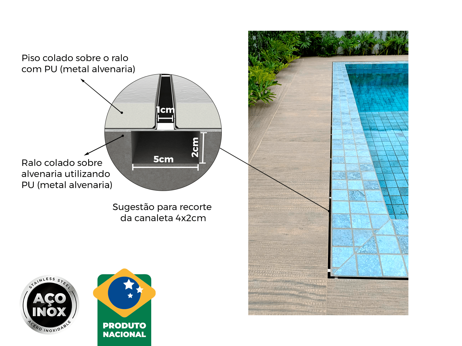 O Ralo Linear Slim 100cm é ideal para jardins, piscinas, áreas externas,