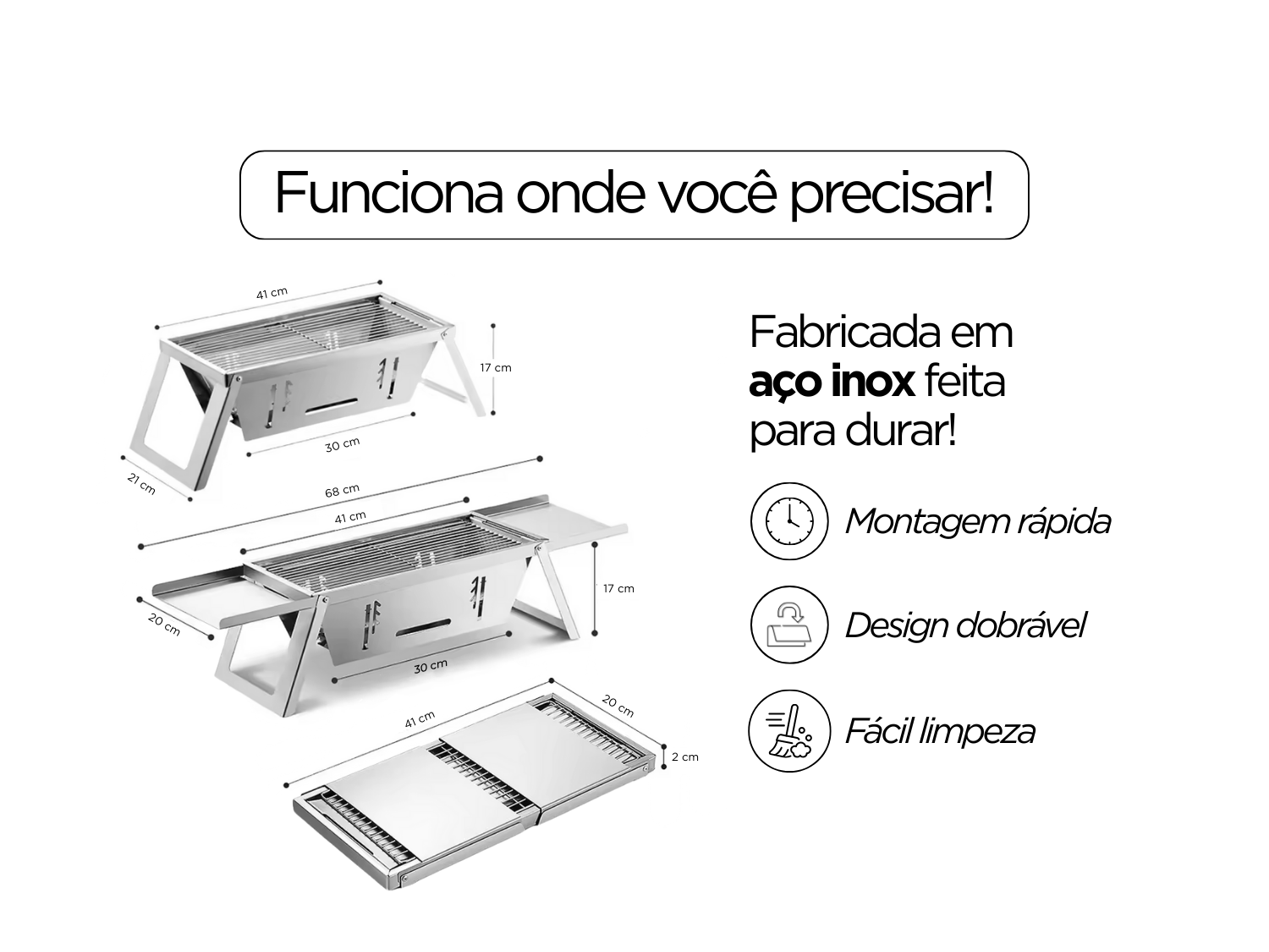 A Churrasqueira Portátil em Aço Inox Escovado é a escolha ideal