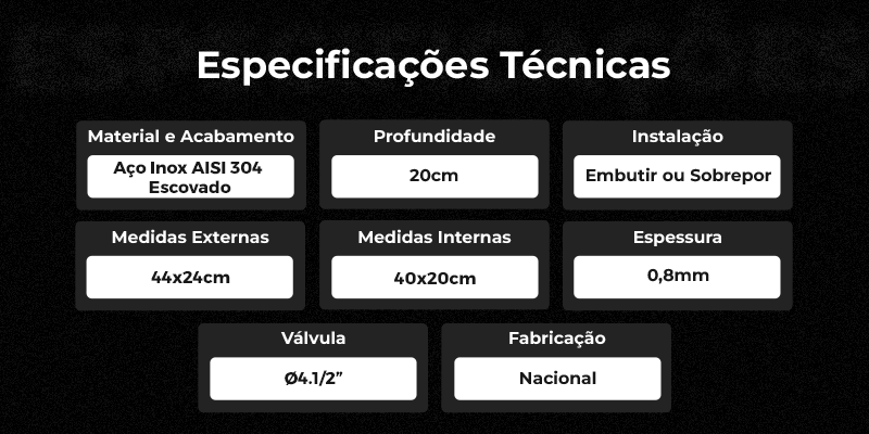 Produto versátil e ideal como uma cuba auxiliar, atendendo a