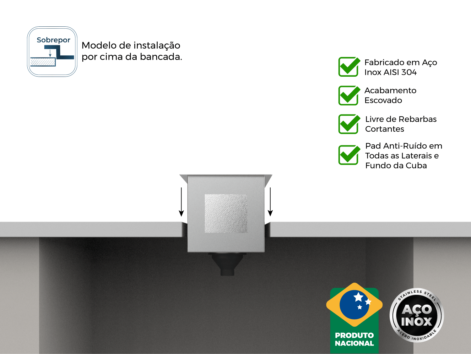 Possui antirruído: Aplicação de PAD especial na parte inferior e lateral externa da cuba,