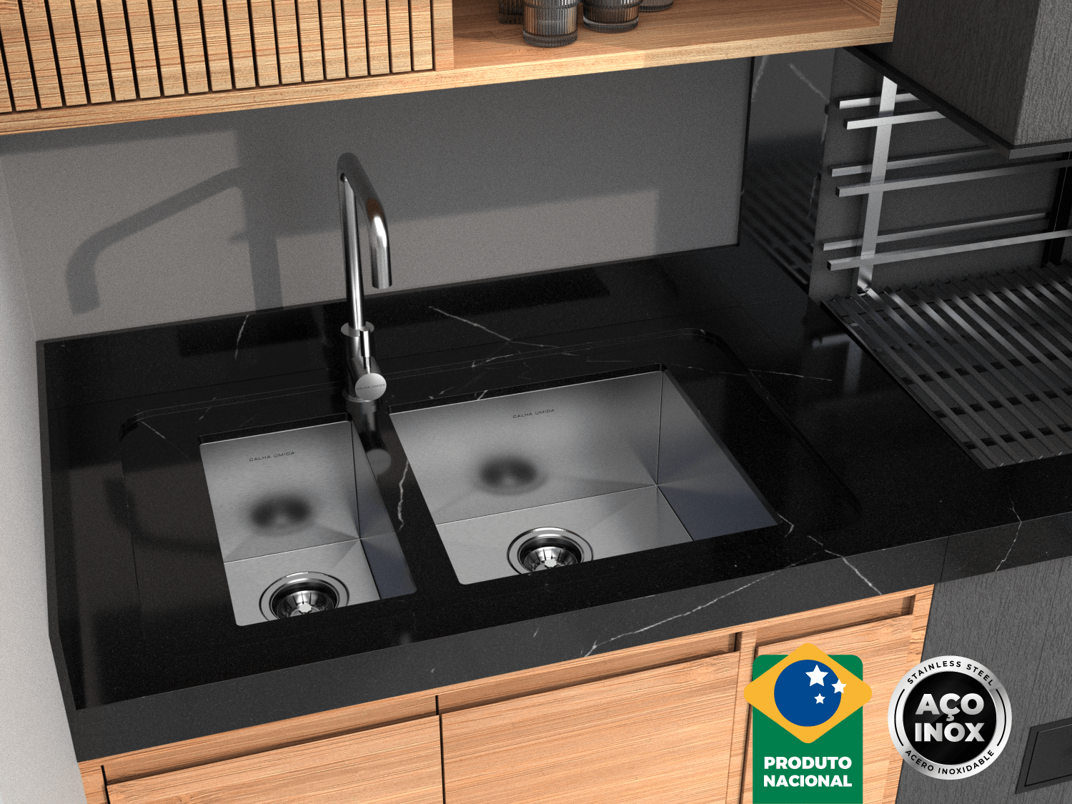 Seguindo a tendência do universo gourmet, o modelo apresenta uma cuba compacta