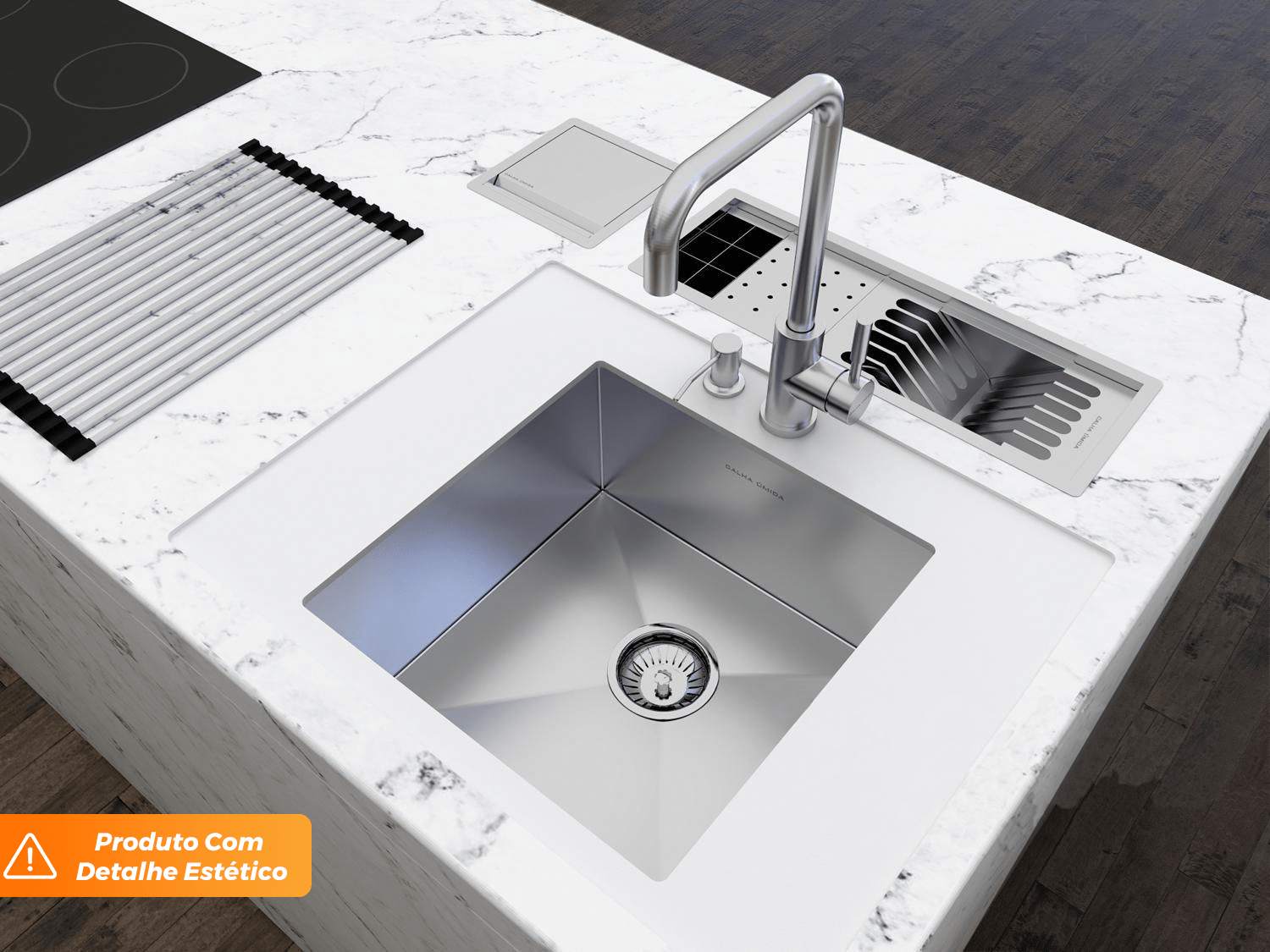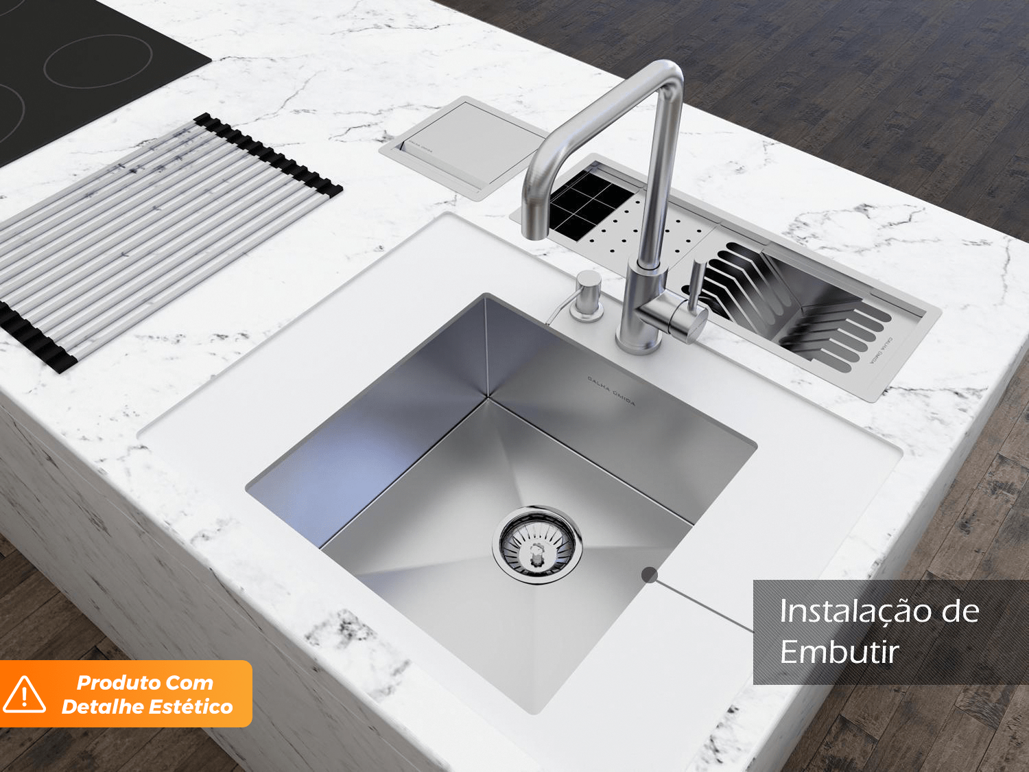 Seguindo a tendência do universo gourmet, o modelo apresenta uma cuba espaçosa e