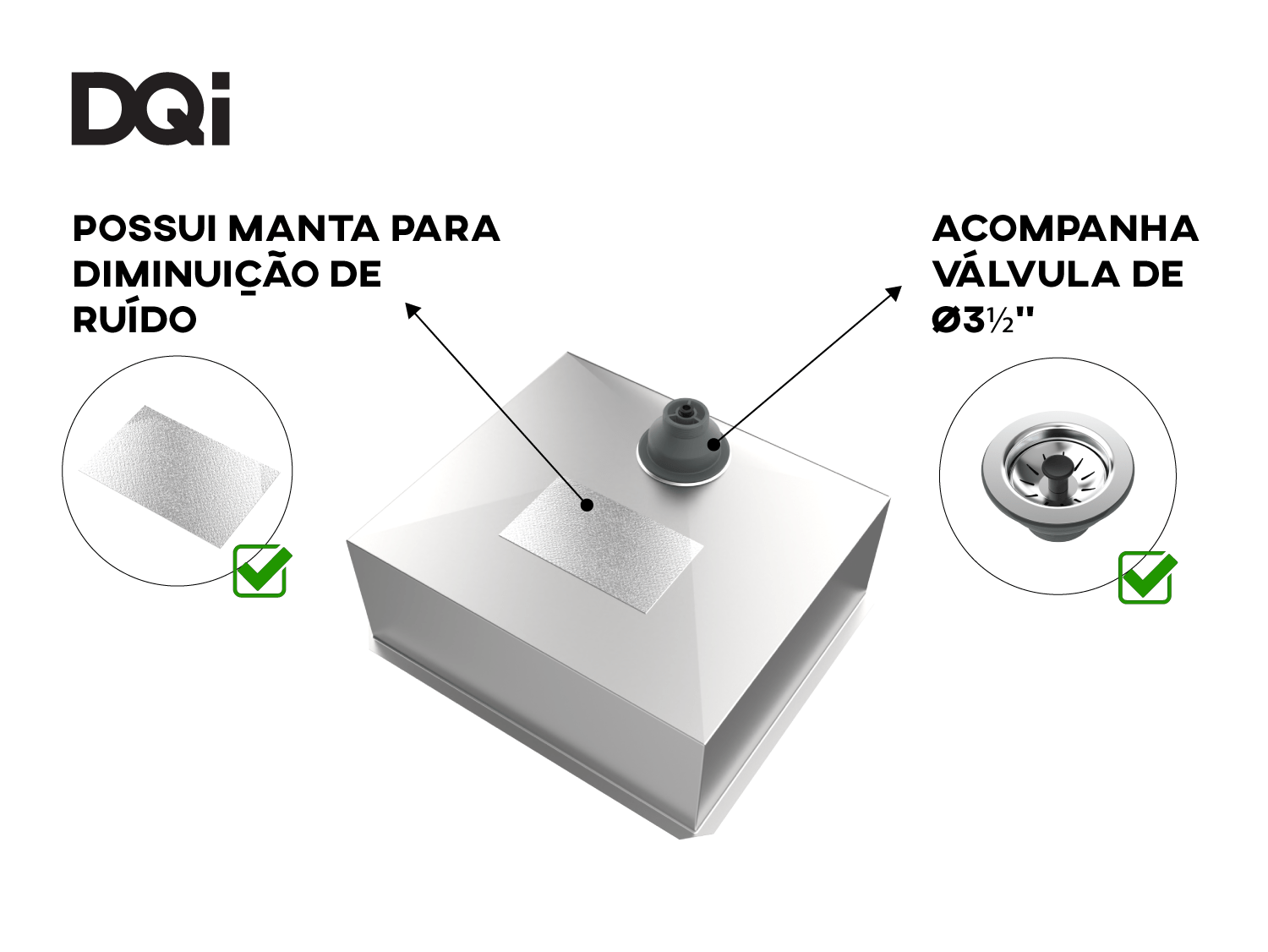 Possui antirruído: Aplicação de PAD especial na parte inferior e lateral externa da cuba,