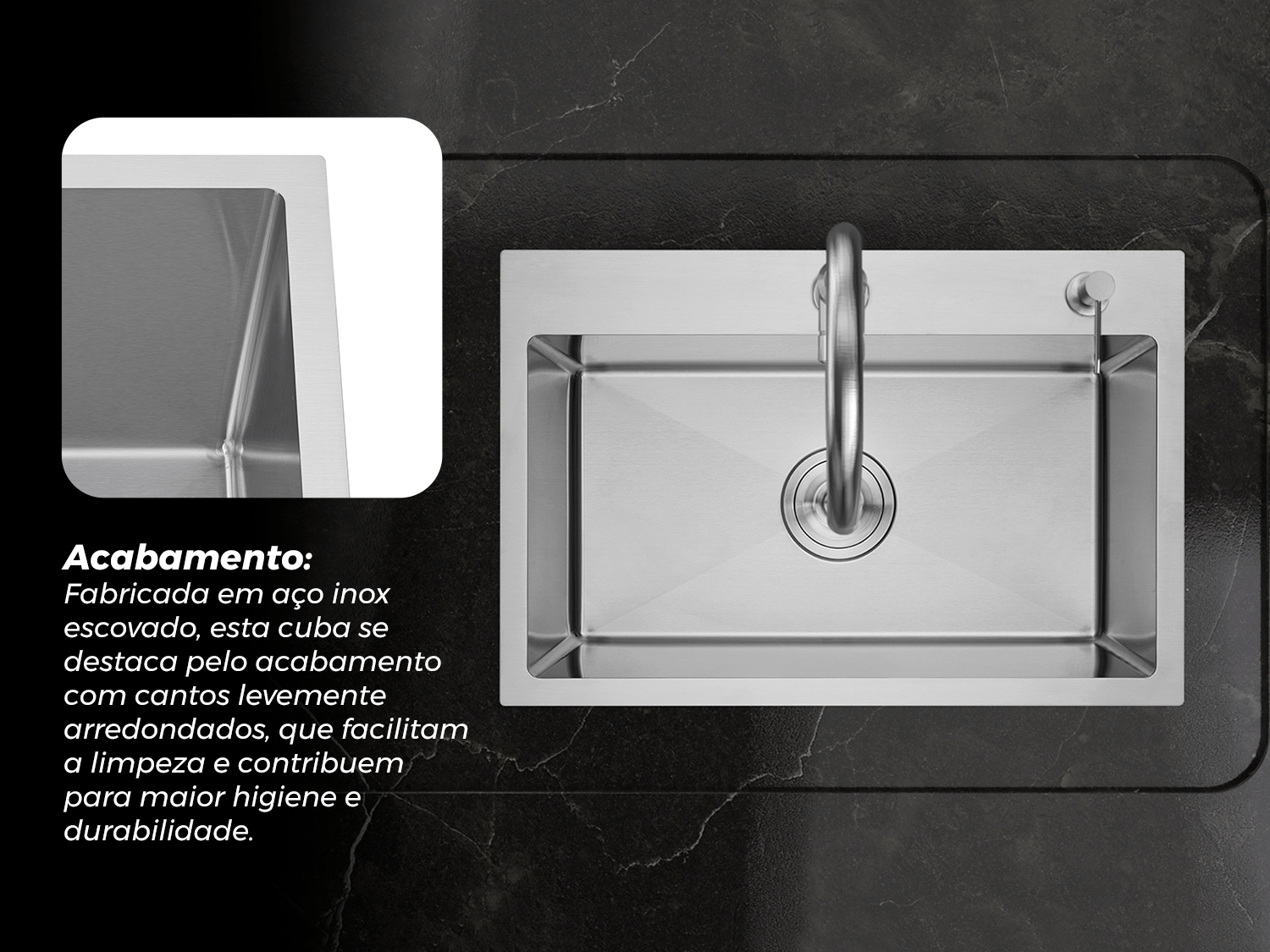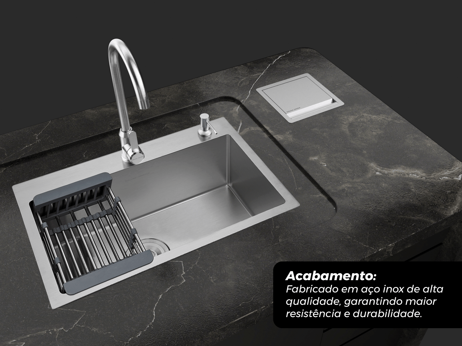 Seguindo a tendência do universo gourmet, o modelo apresenta uma cuba espaçosa