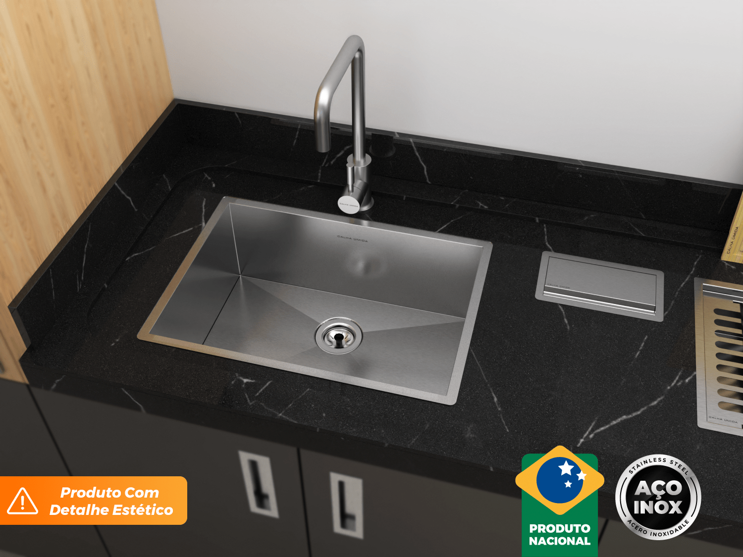 Seguindo a tendência do universo gourmet, o modelo apresenta uma cuba espaçosa e