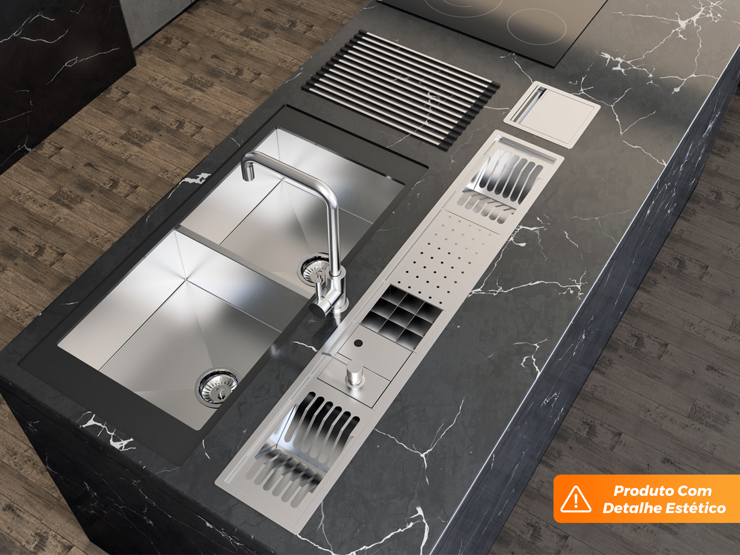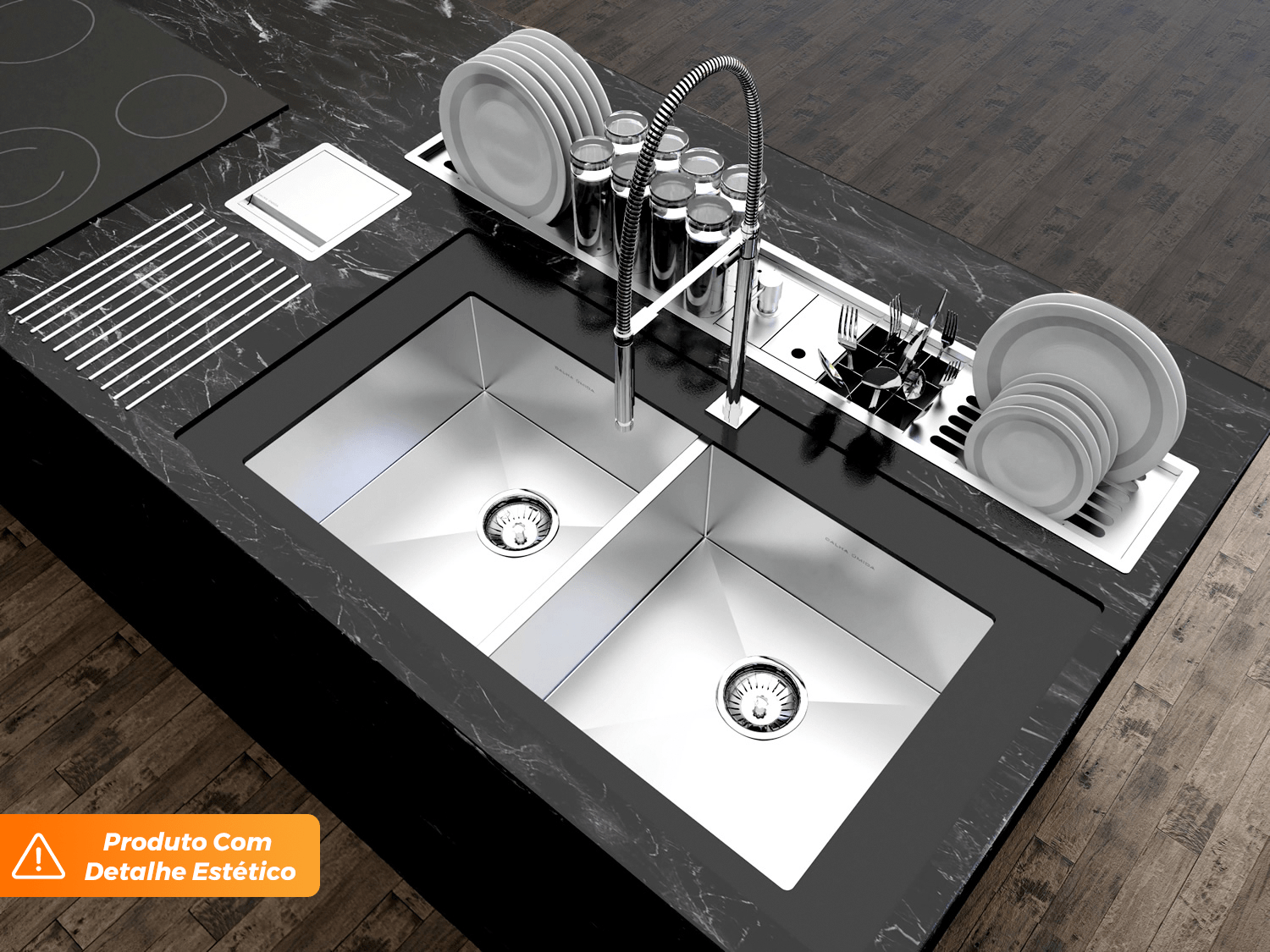 Com design clean e linhas retas, a Cuba Dupla complementa com elegância
