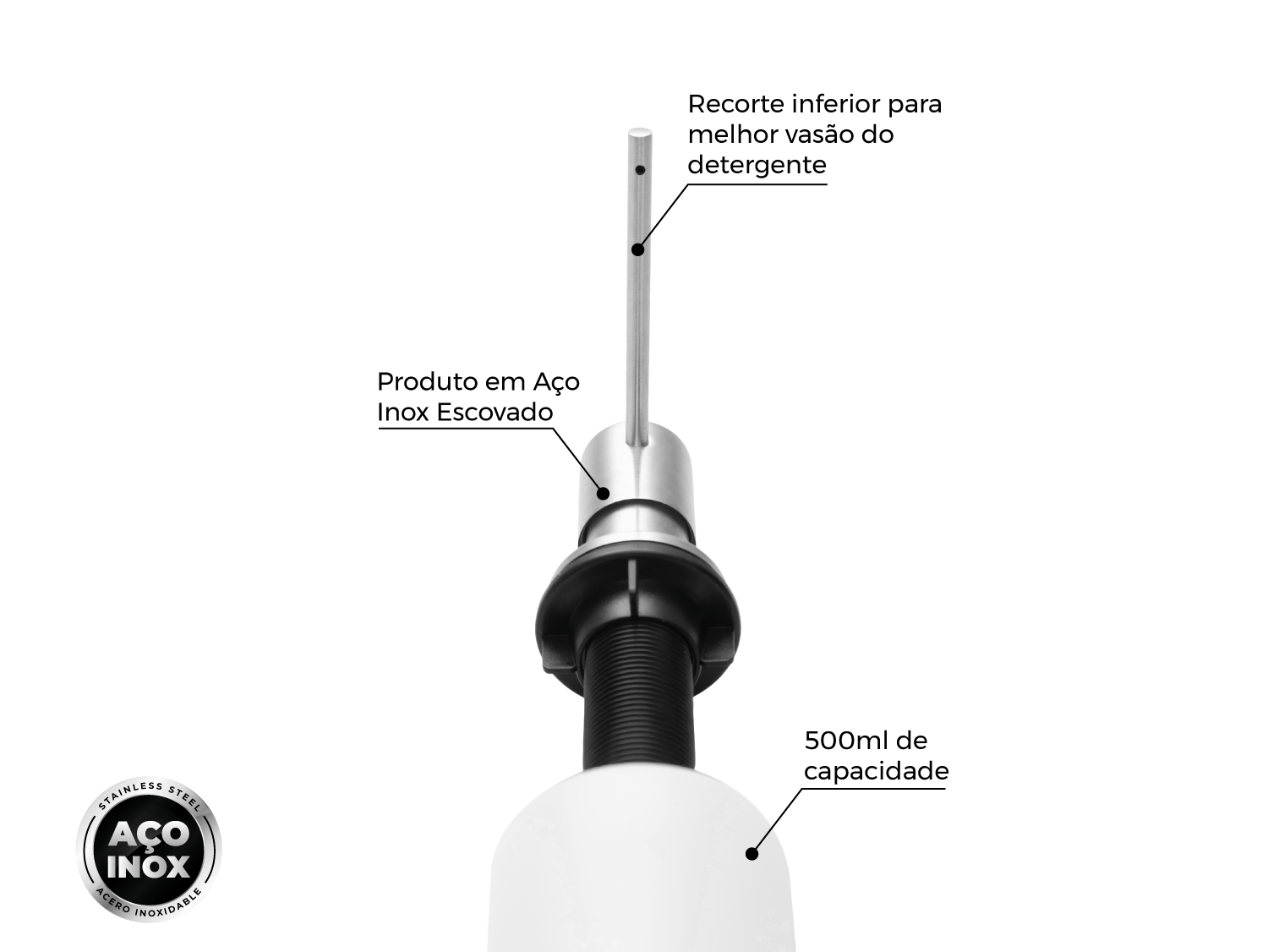 Com recorte inferior para melhor vazão do detergente e bico com