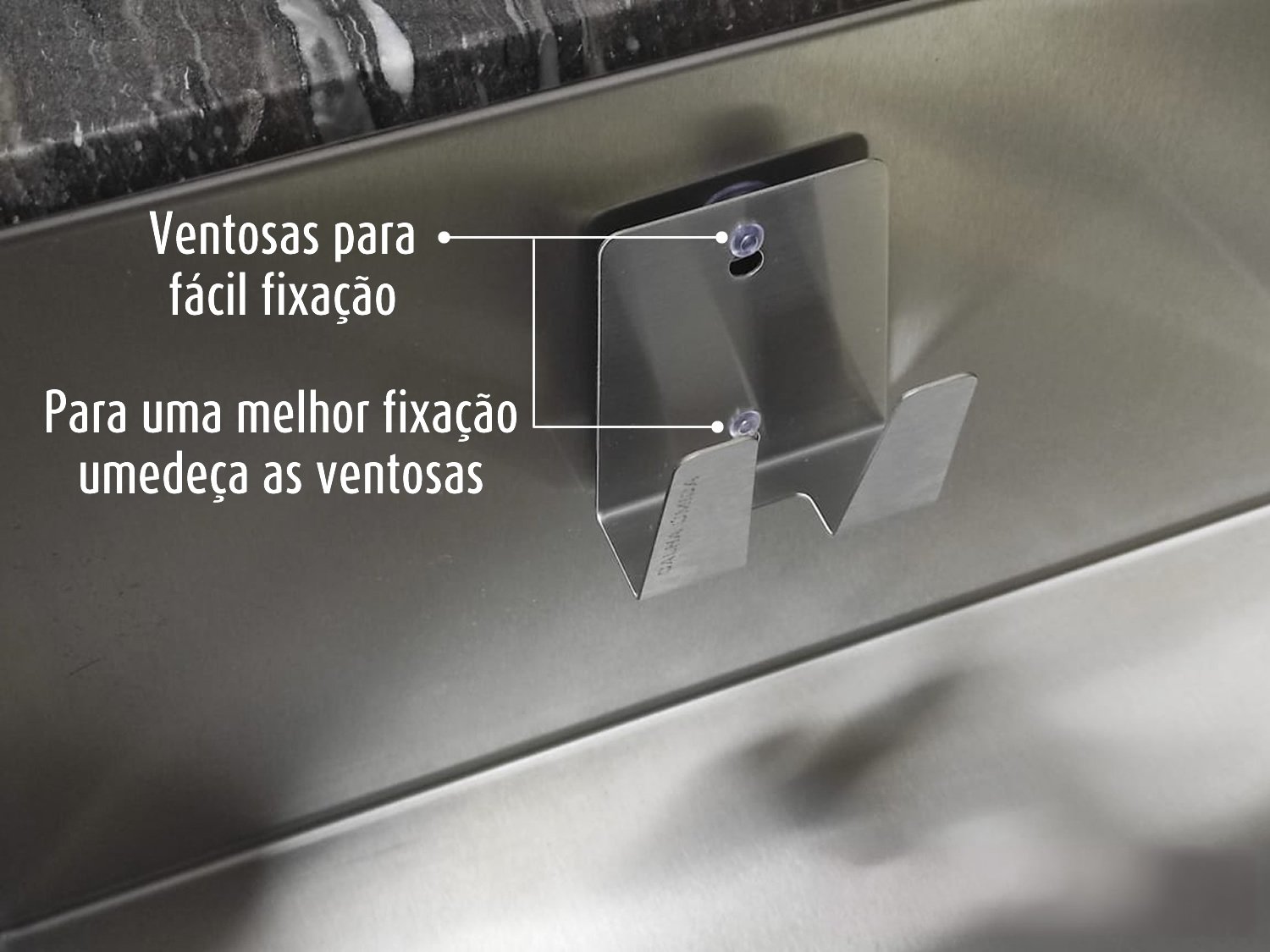 USAR A VENTOSA MOLHADA PARA MELHOR FIXAÇÃO EM SUPERFÍCIES POROSAS COMO O INOX ESCOVADO.