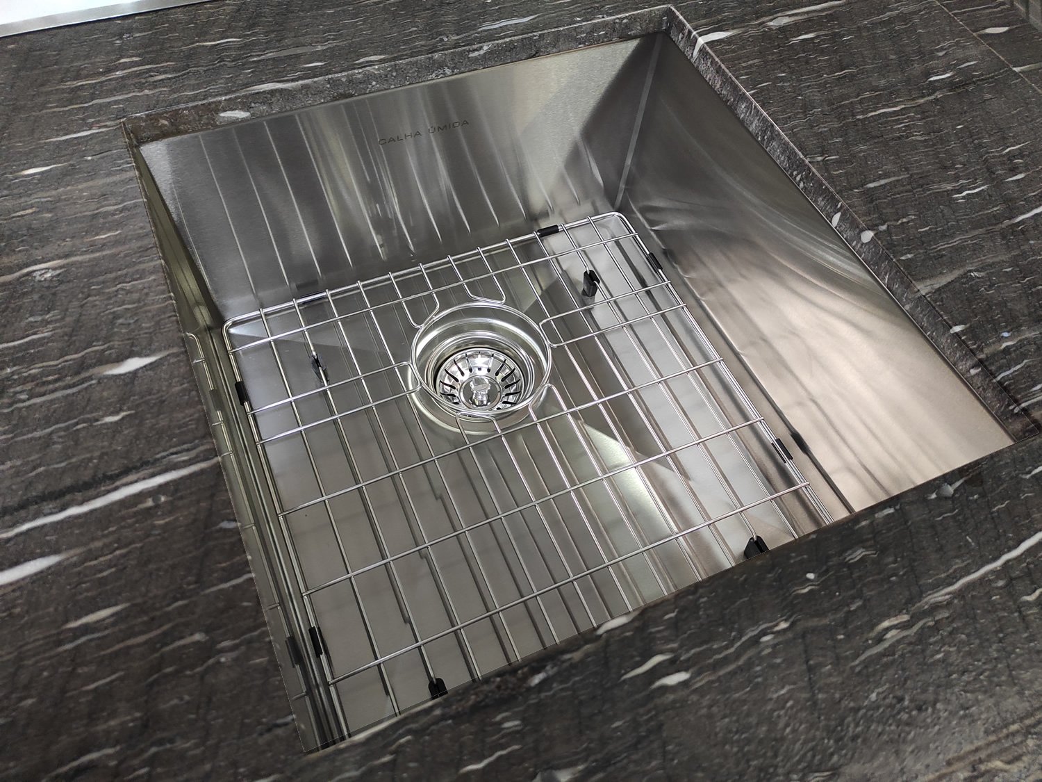 A Grade Aramada para Fundo de Cuba Calha Úmida em Aço Inox com Acabamento Eletropolido vai trazer mais proteção para sua cuba e deixar ela sempre nova, além de facilitar o uso no dia a dia evitando o transbordamento. Sua cozinha mais prática e organizada.