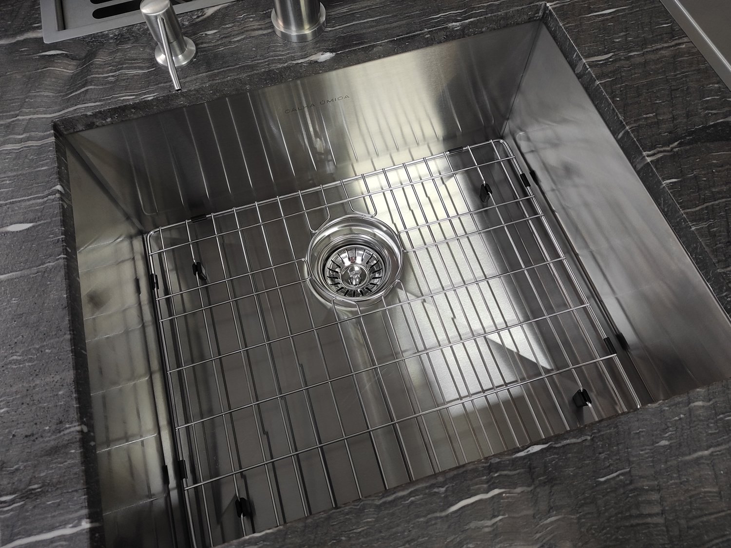 A Grade Aramada para Fundo de Cuba Calha Úmida em Aço Inox com Acabamento Eletropolido vai trazer mais proteção para sua cuba e deixar ela sempre nova, além de facilitar o uso no dia a dia evitando o transbordamento. Sua cozinha mais prática e organizada.