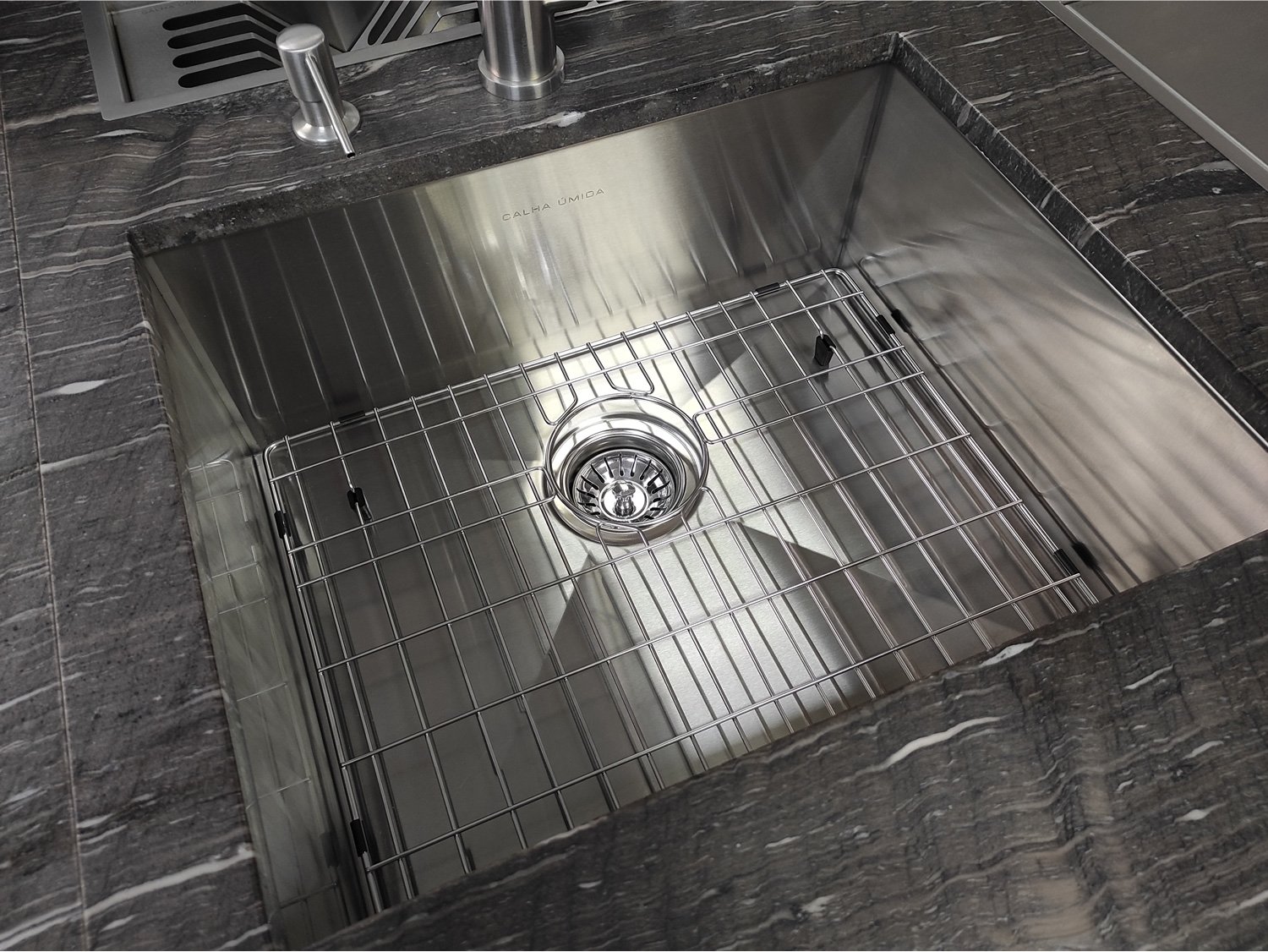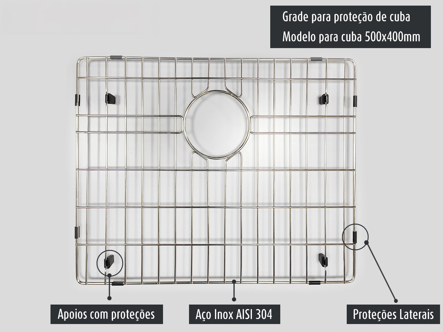 Pensando sempre no melhor uso dos produtos Calha Úmida, essa peça foi projetada para ser usada de diversas maneiras, a grade vai proteger o interior da cuba contra riscos e arranhões (sendo usada de forma correta) e também servir de escorrer de louças. É uma peça fabricada em aço inox, durável e resistente com acabamento eletropolido.