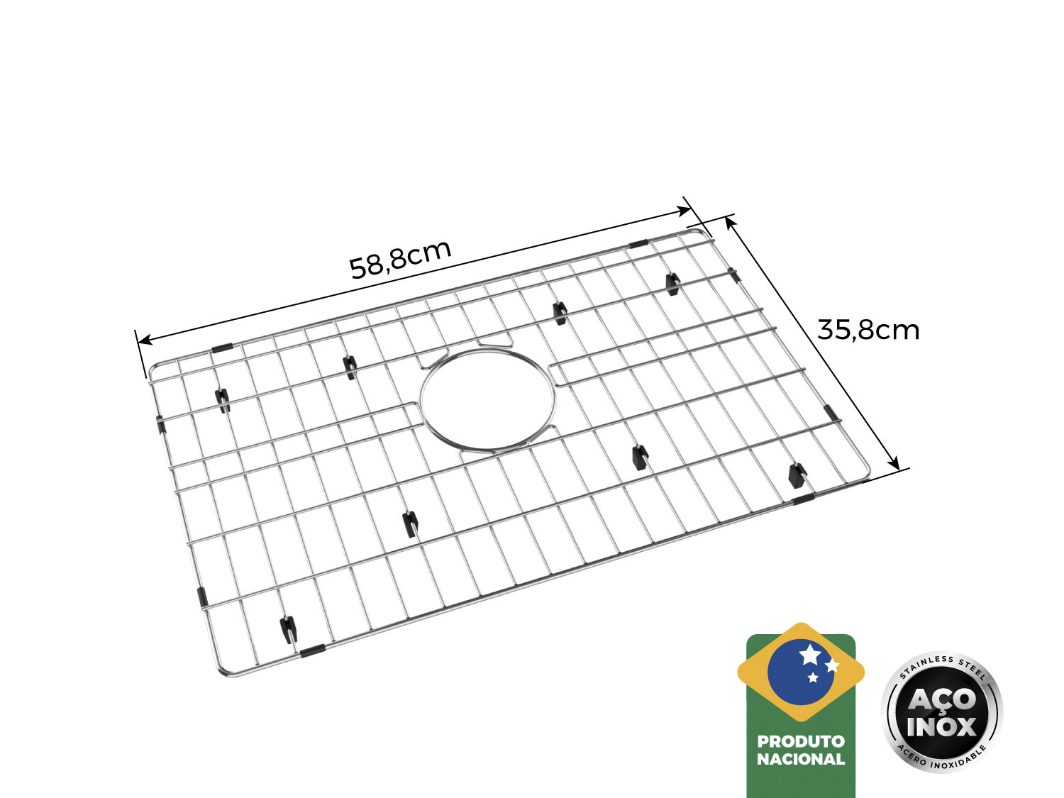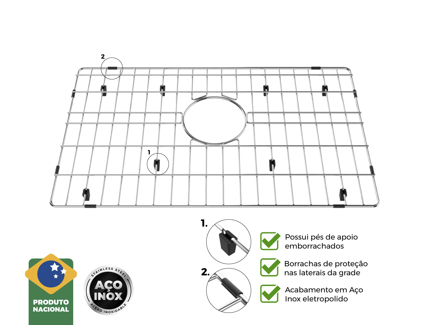 Pensando sempre no melhor uso dos produtos Calha Úmida, essa peça foi projetada para ser usada de diversas maneiras, a grade vai proteger o interior da cuba contra riscos e arranhões (sendo usada de forma correta) e também servir de escorrer de louças. É uma peça fabricada em aço inox, durável e resistente com acabamento eletropolido.