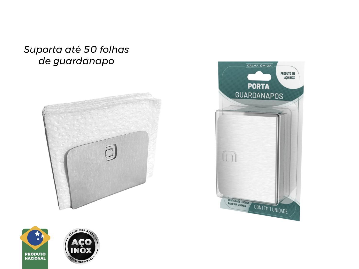 ITENS INCLUSOS 10 Porta Guardanapos em aço inox escovado Calha Úmida.