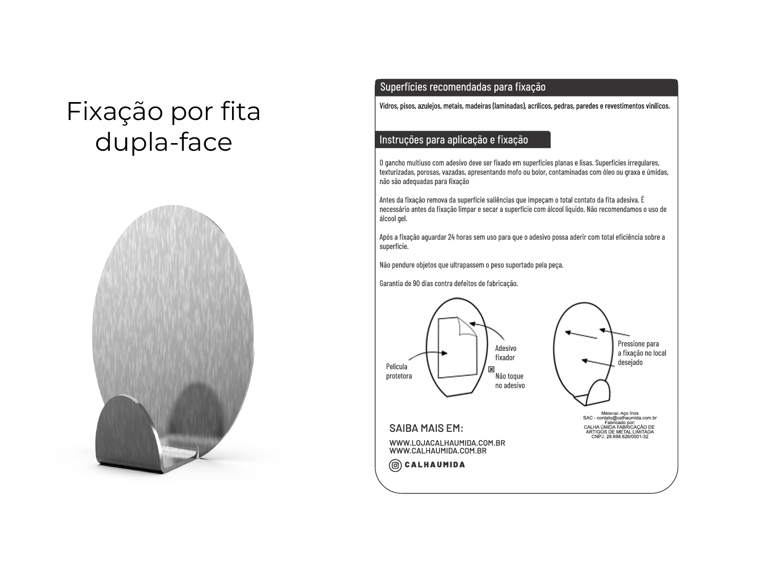 Excelente opção para decoração de ambientes, foi desenvolvido em aço inox 304. A fita adesiva permanente deve ser aplicada somente em superfícies lisas.