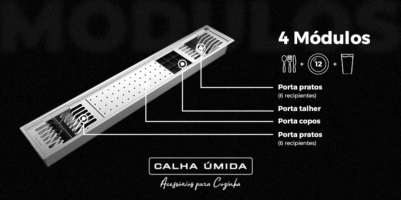 O Escorredor Calha Úmida Kitchen 4 Módulos 118cm é a solução ideal