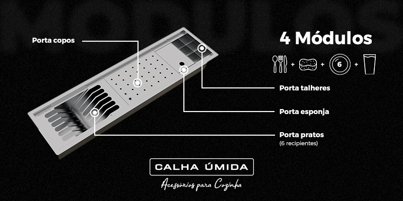O Escorredor Calha Úmida Kitchen 4 Módulos 73,5cm PET é a solução ideal