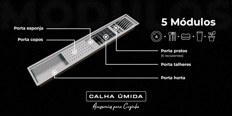 O Escorredor Calha Úmida Kitchen 5 Módulos 118cm PH29,1cm é a solução ideal