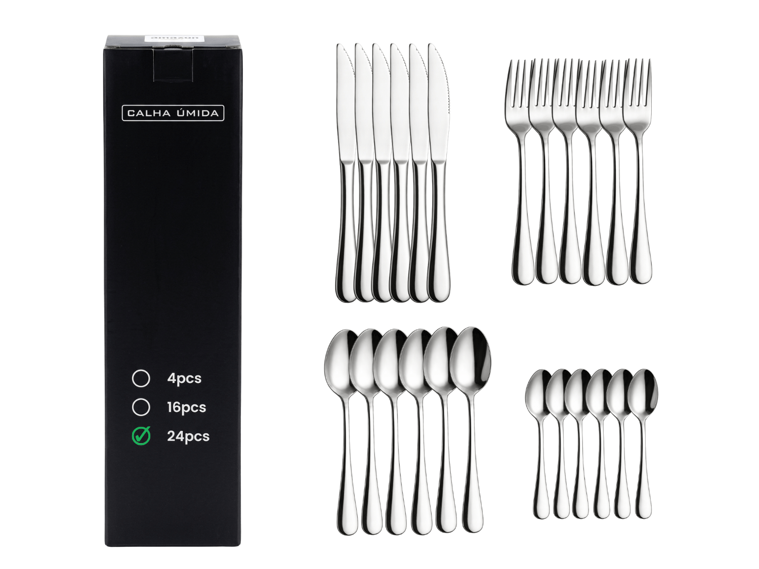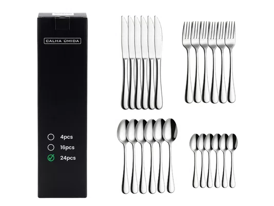 O kit conta com 24 peças, atendendo perfeitamente às necessidades de uma mesa completa, seja para uso diário ou ocasiões especiais.