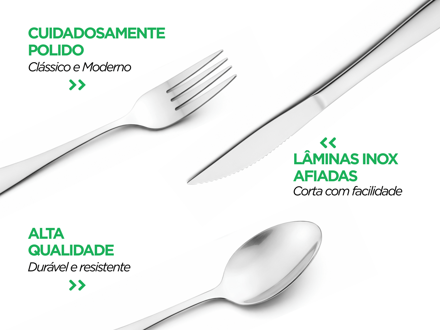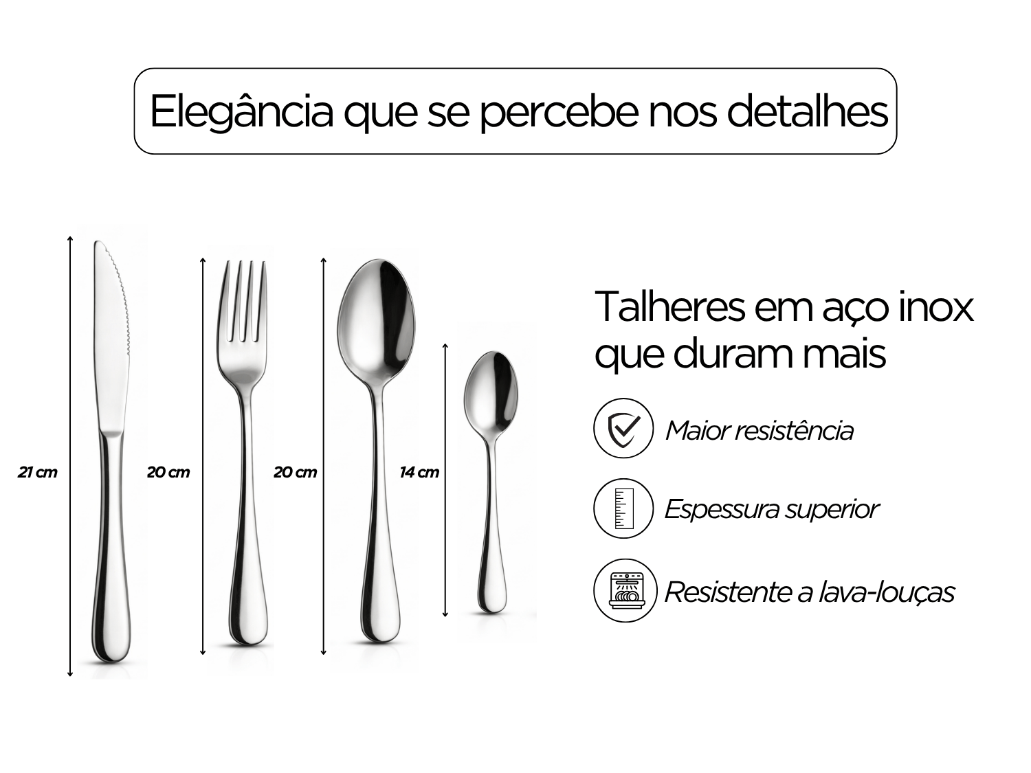 Com linhas elegantes e acabamento sofisticado, os talheres valorizam a apresentação da mesa, elevando o nível das refeições com um toque de modernidade e bom gosto.