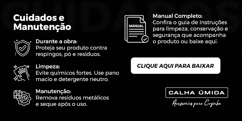 Manutenção: Seque bem após a limpeza e evite o acúmulo de resíduos metálicos
