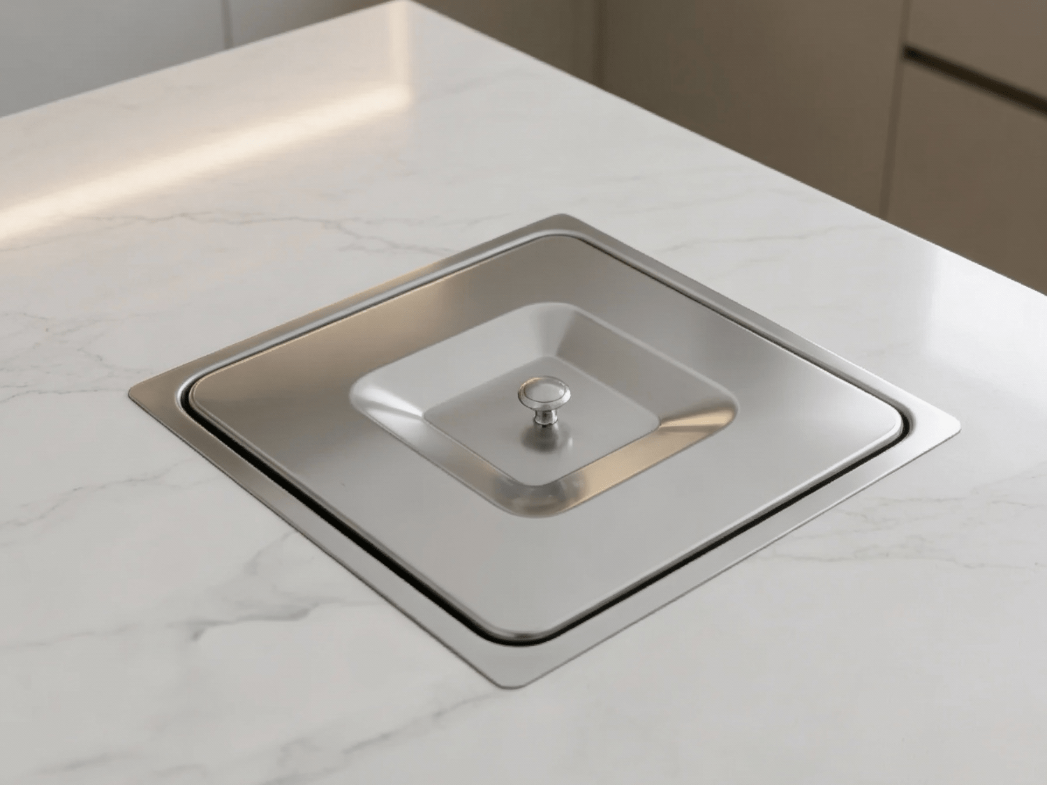 Seu formato quadrado e compacto é ideal para instalação em bancadas de cozinhas, áreas gourmet e espaços funcionais, mantendo o ambiente sempre organizado e discreto.