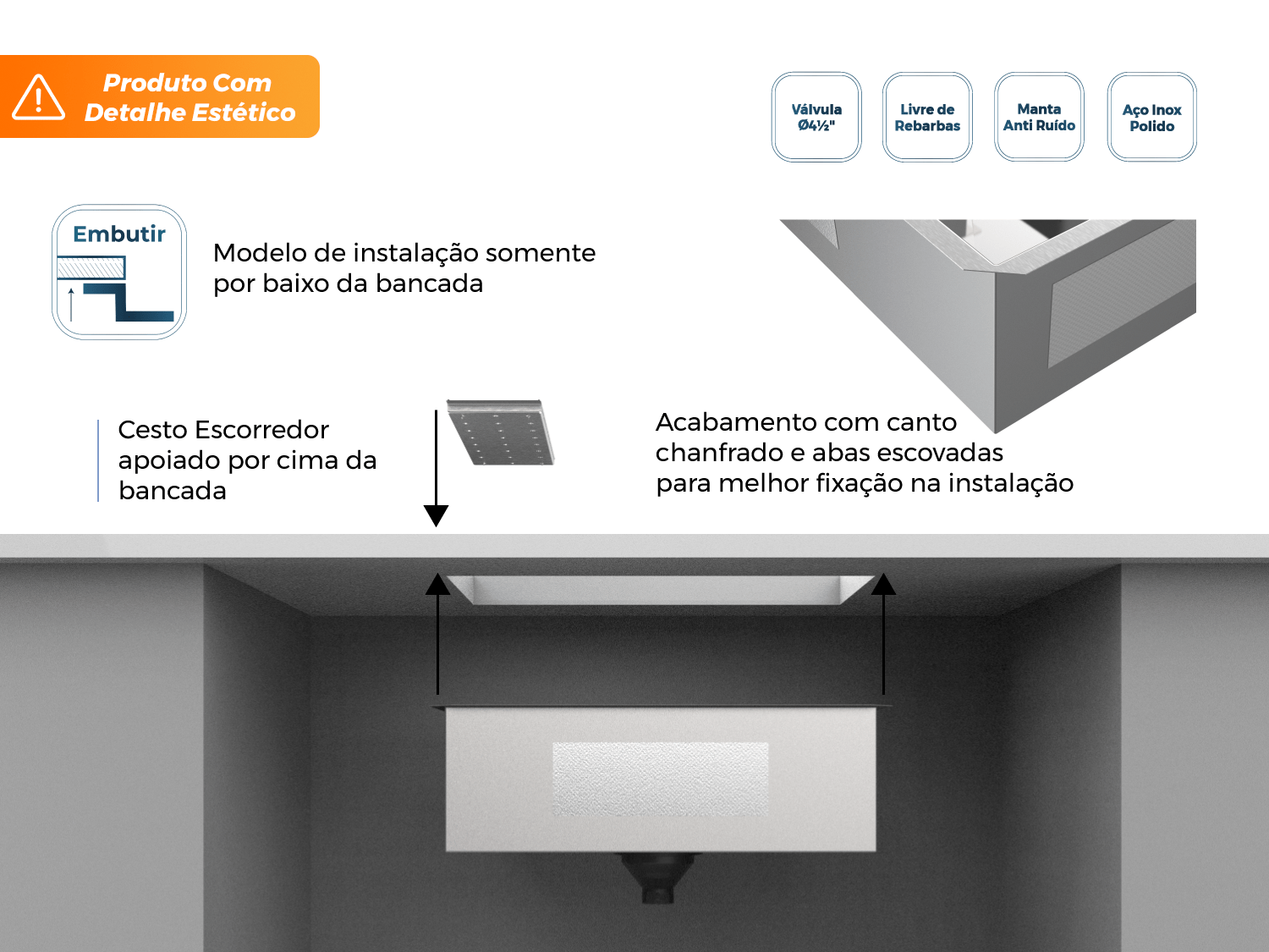 apresenta uma cuba espaçosa e funcional com Escorredor Splendore