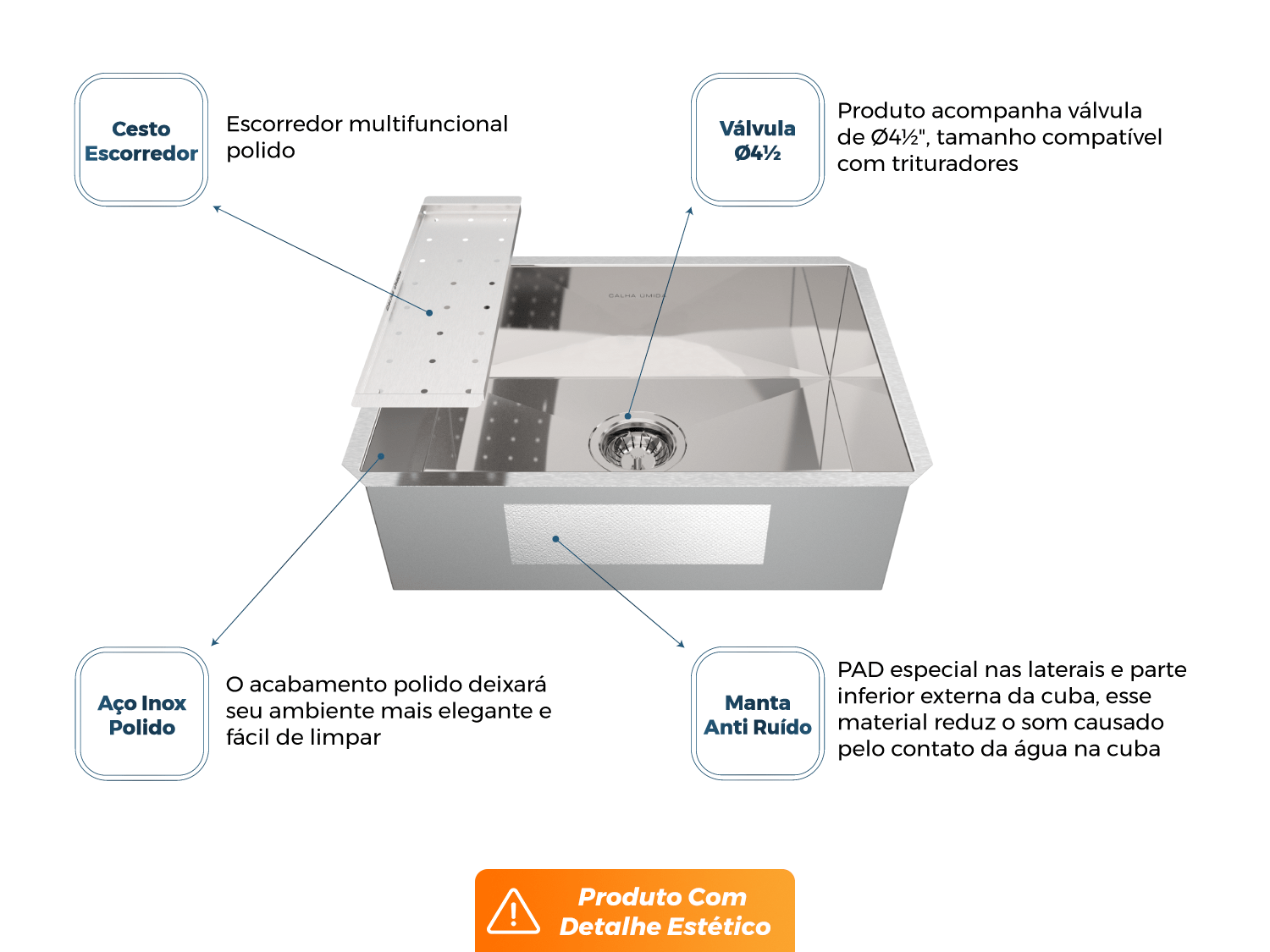 e espaços gourmet, fabricada em aço inox polido, ela vai fazer um excelente