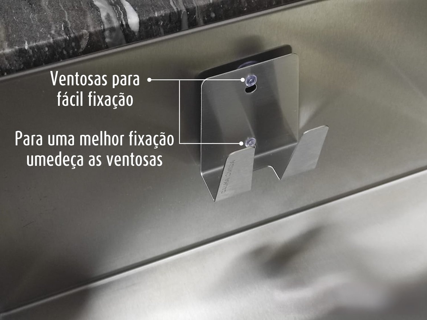 USAR A VENTOSA MOLHADA PARA MELHOR FIXAÇÃO EM SUPERFÍCIES POROSAS COMO O INOX ESCOVADO.