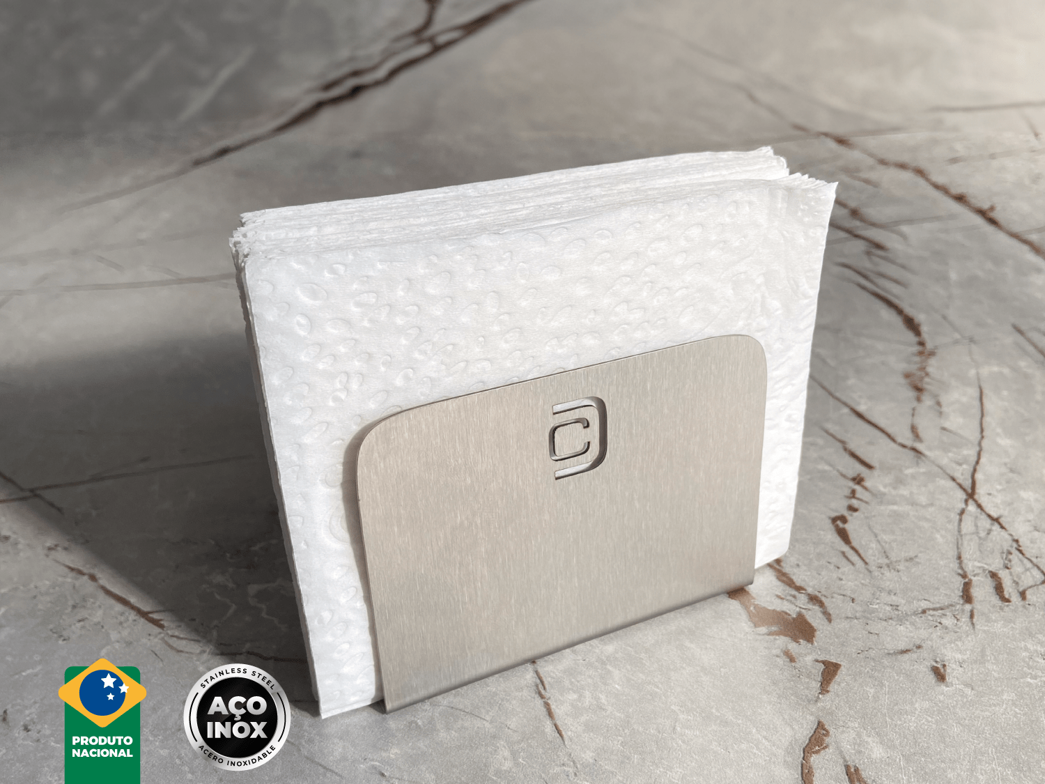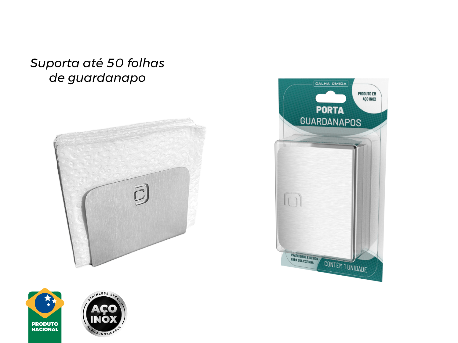 01 Porta Guardanapos em aço inox escovado Calha Úmida