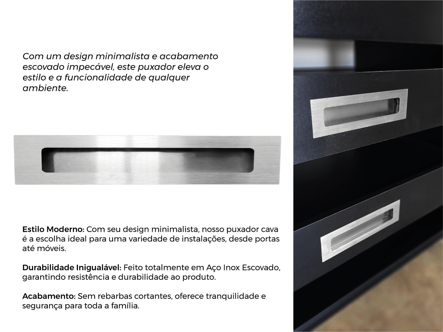 Helton M.22/09/2025Eu recomendo esse produto.Puxador Cava InoxO puxador cava concha em aço inox é uma excelente escolha para quem busca elegância minimalista, resistência e praticidade, sendo uma solução que alia design sofisticado e funcionalidade. É um detalhe pequeno que dá cara de projeto de alto padrão.