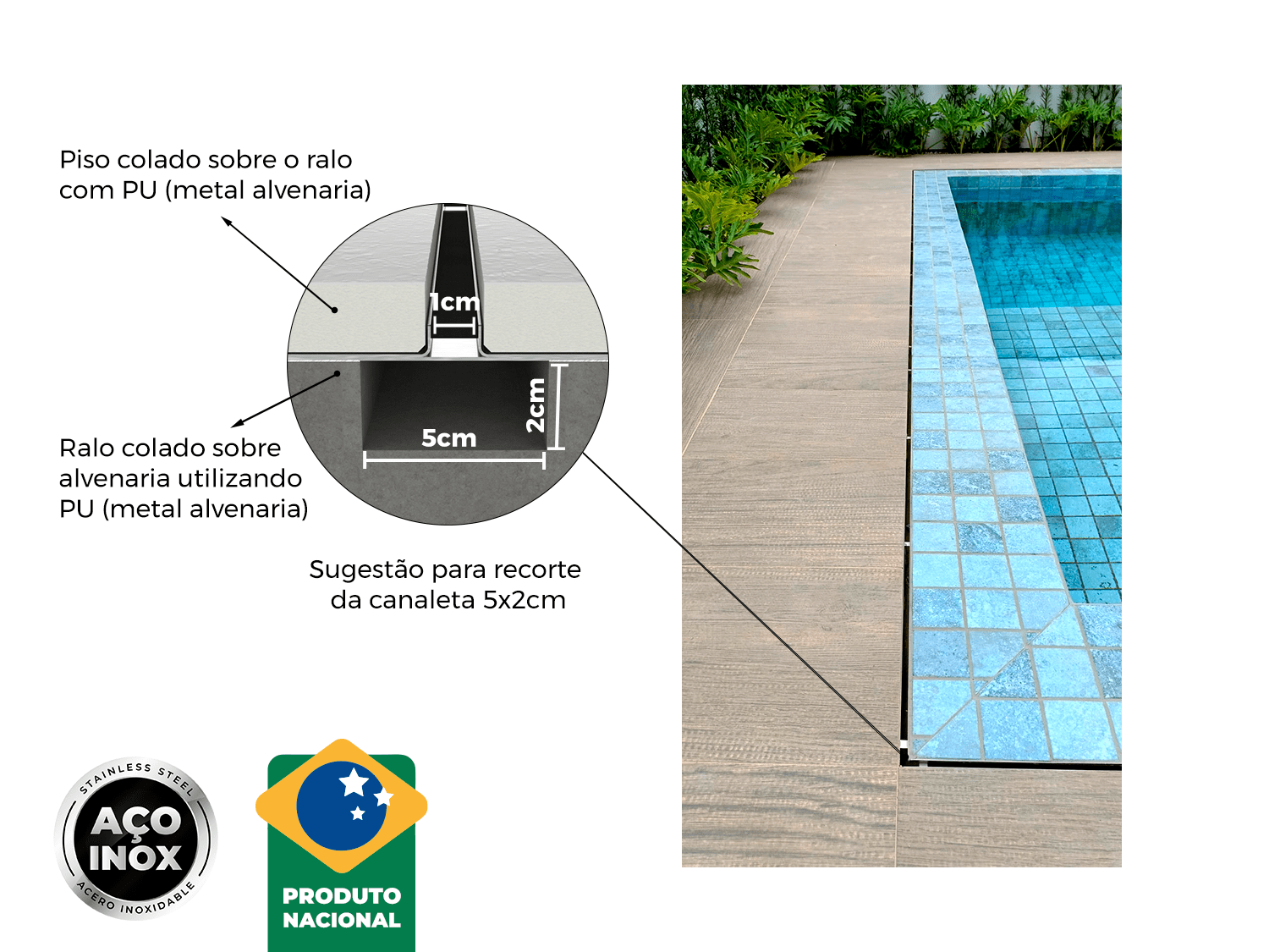 o Ralo de Canto Linear Slim 90º é ideal para jardins, piscinas, áreas externas,