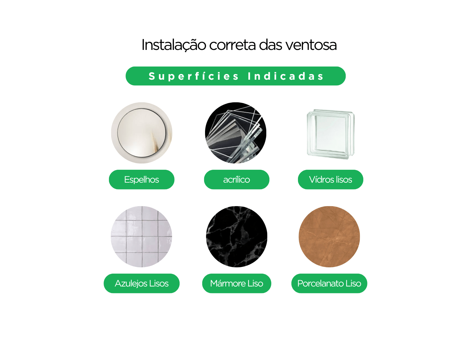 Para melhor desempenho, recomenda-se instalar em superfícies lisas, limpas e não porosas, como vidro, azulejo ou superfícies polidas.