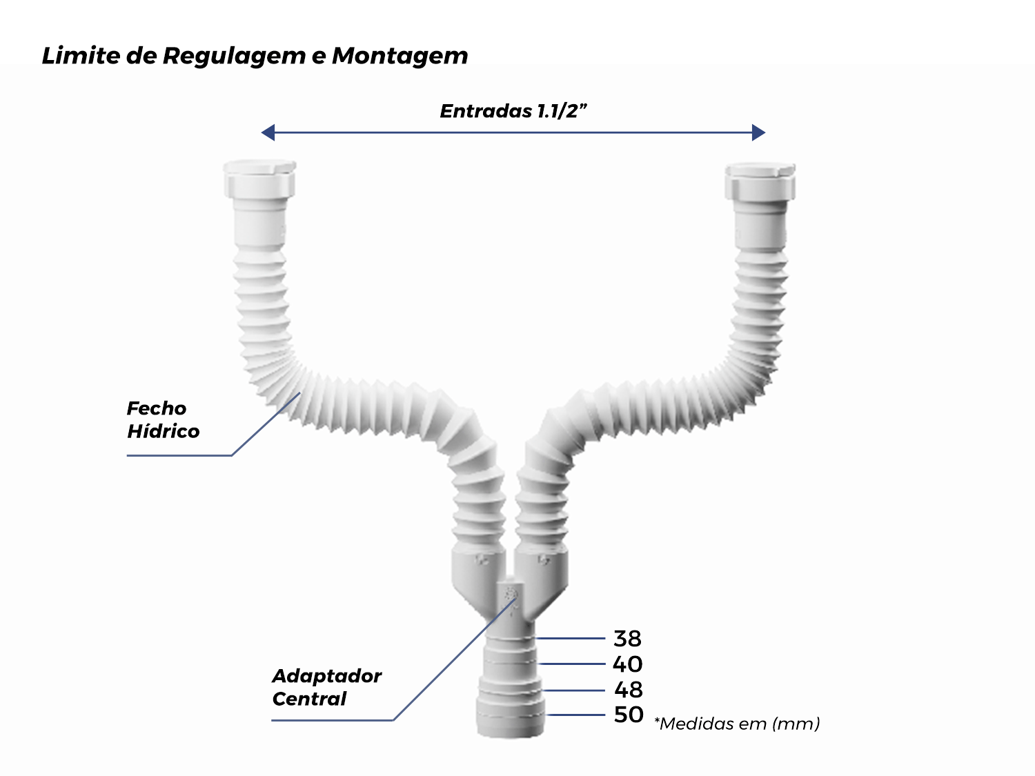 Essa curva em formato de "U" dentro do sifão tem a função de reter uma pequena quantidade de água, criando uma barreira seladora que impede o retorno dos gases e do mau cheiro provenientes da rede de esgoto para o seu ambiente. Certifique-se de que a parte flexível do sifão forme essa curva após a instalação para evitar problemas com odores desagradáveis.