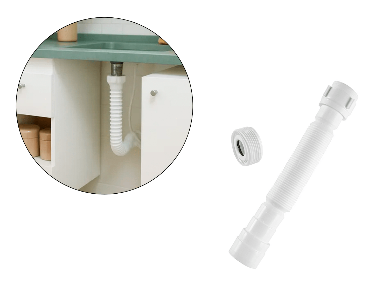 Este sifão foi projetado para se ajustar a diferentes padrões de válvulas e tubos de esgoto, tornando a instalação simples e rápida: