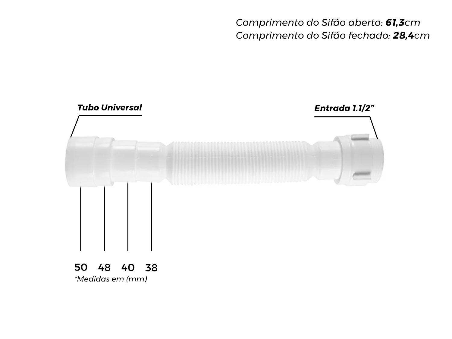 Sifão Universal Ajustável Curto 61cm (Branco): Instalação Fácil e Proteção Contra Mau Cheiro