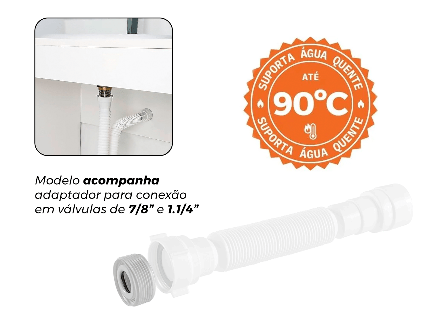 Resistência: Fabricado com material resistente, suporta o escoamento de água quente de até 90º graus.
