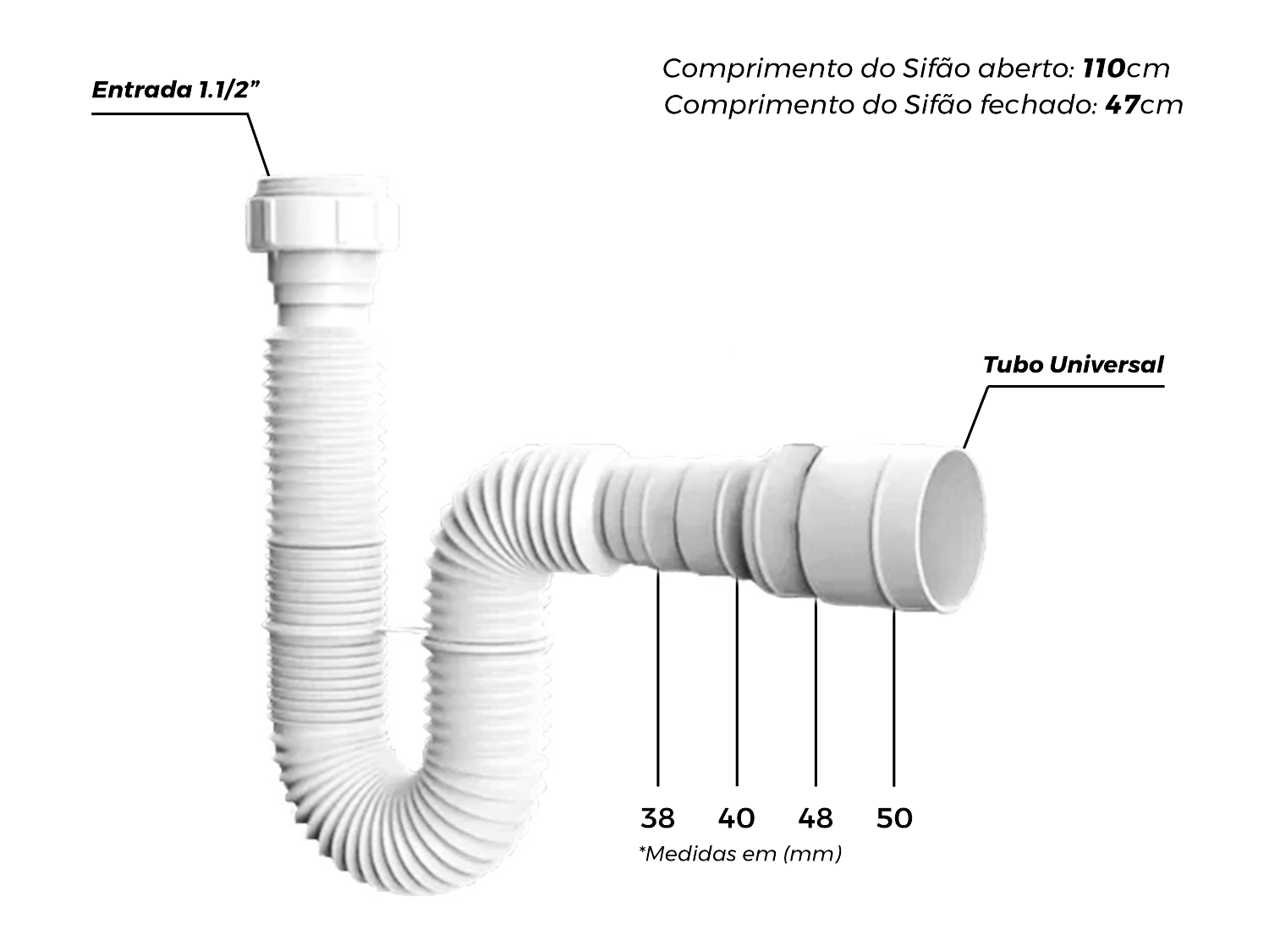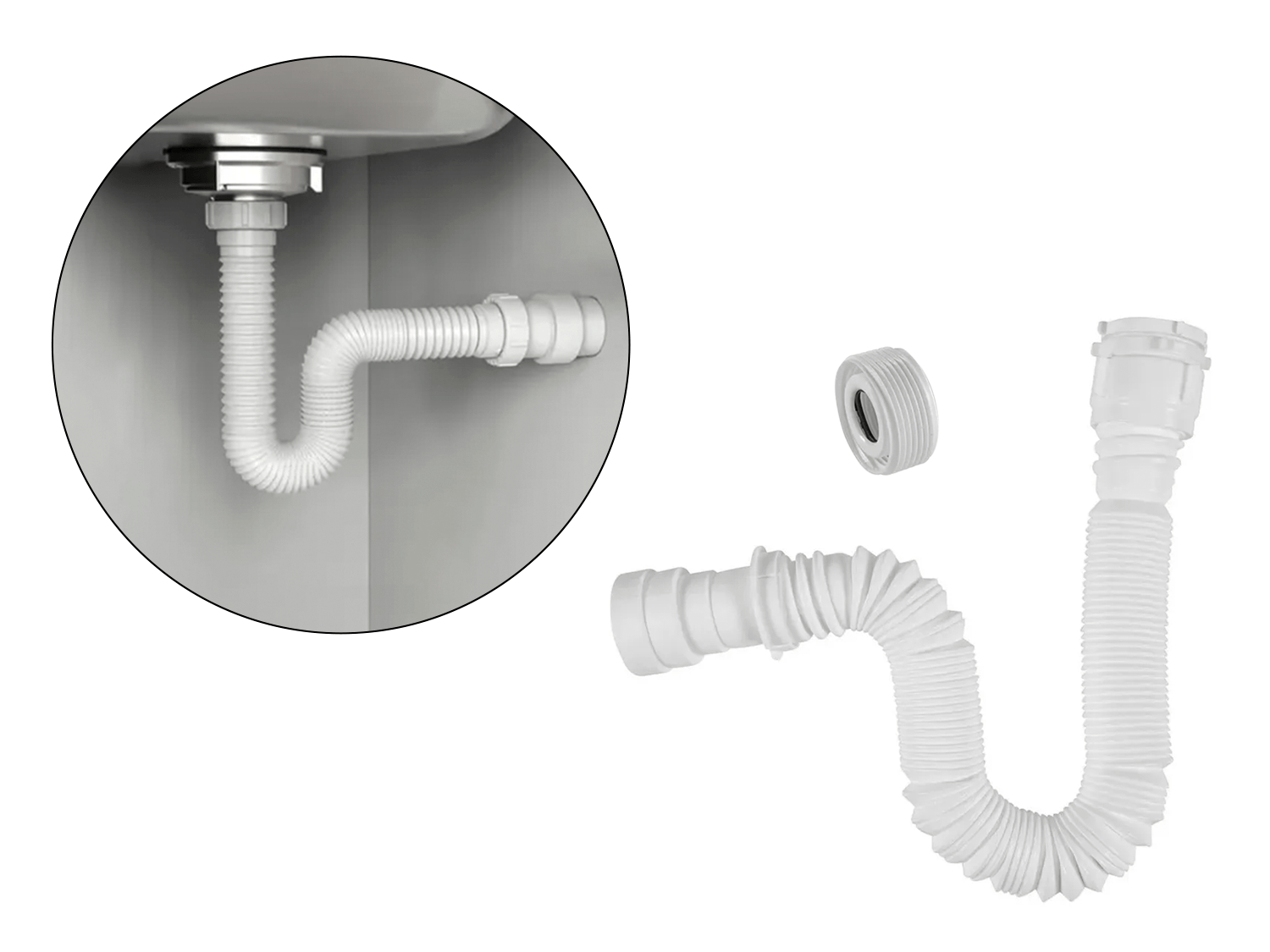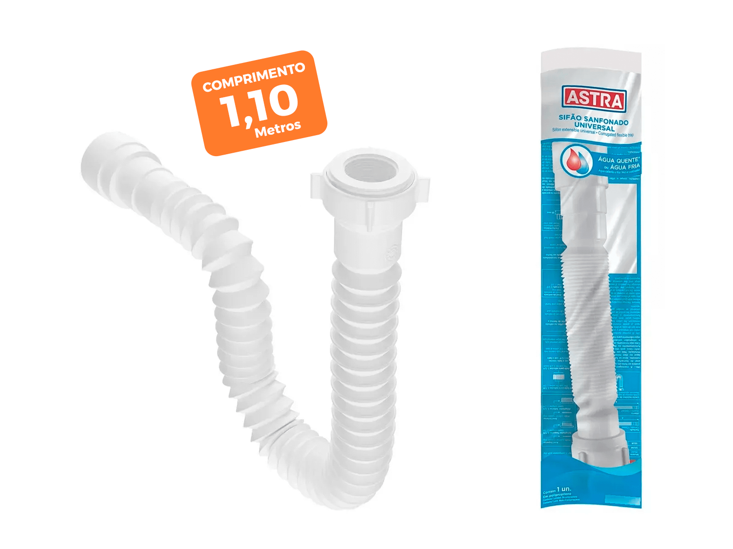 Sifão Universal Sanfonado Flexível de 1,10m (Branco): Instalação Fácil e Proteção Contra Mau Cheiro