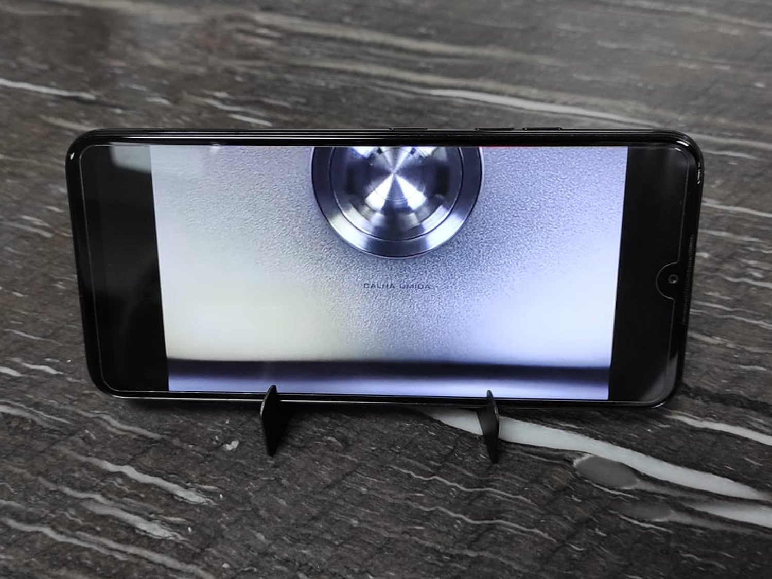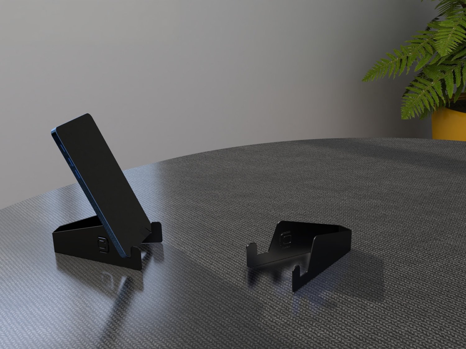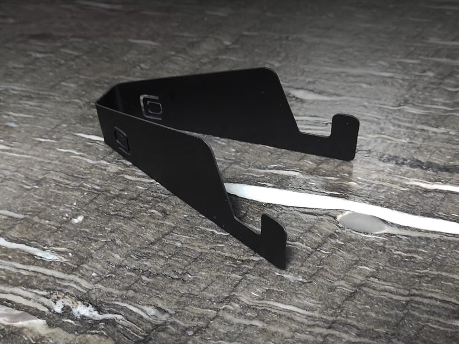 - ( Linha office da Calha Úmida ) - Material: Aço Inox - Cor: Preto Fosco - Suporta celular ou tablet com espessura máxima de 16 mm