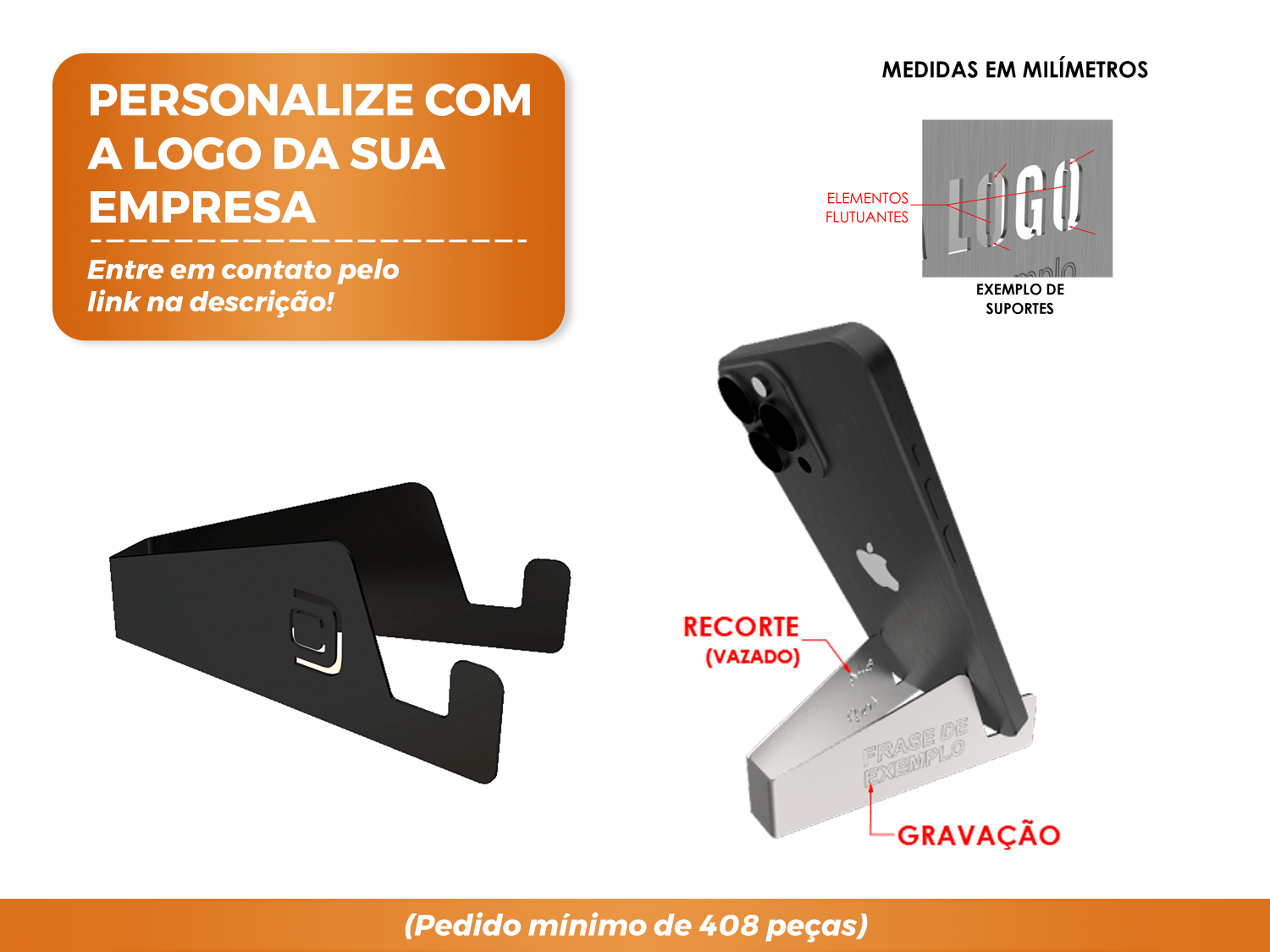 Pedido Mínimo: A personalização exige um pedido mínimo de 408 peças.