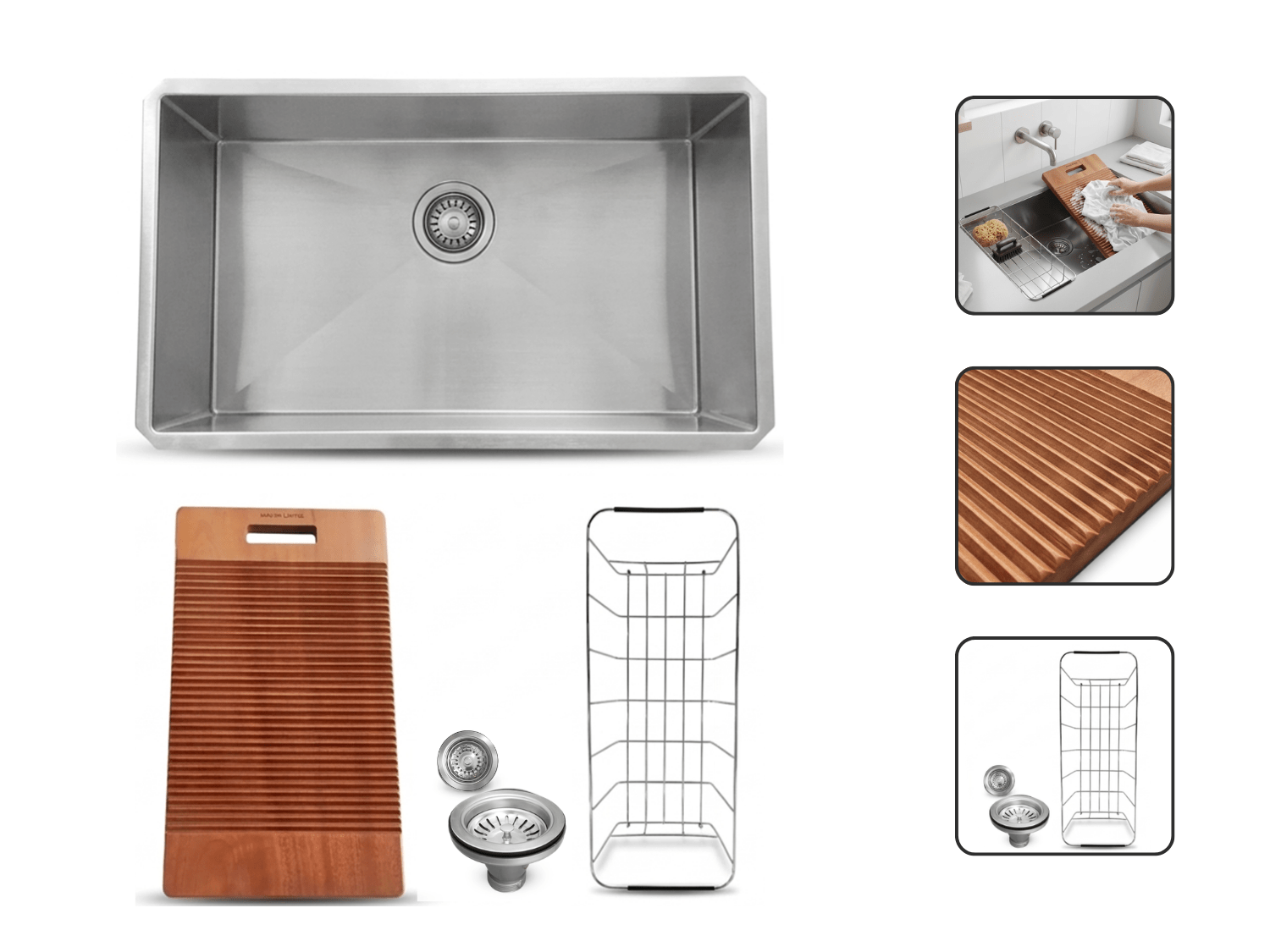 O tanque acompanha cesto em aço inox com base emborrachada, que protege a bancada contra riscos e arranhões, além de facilitar o manuseio no dia a dia.