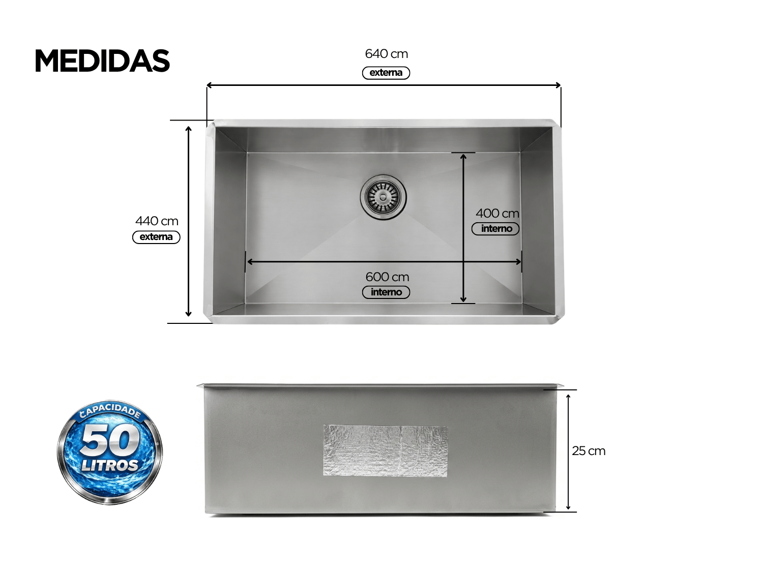 01 Tanque de Embutir em Aço Inox 50 Litros Pro