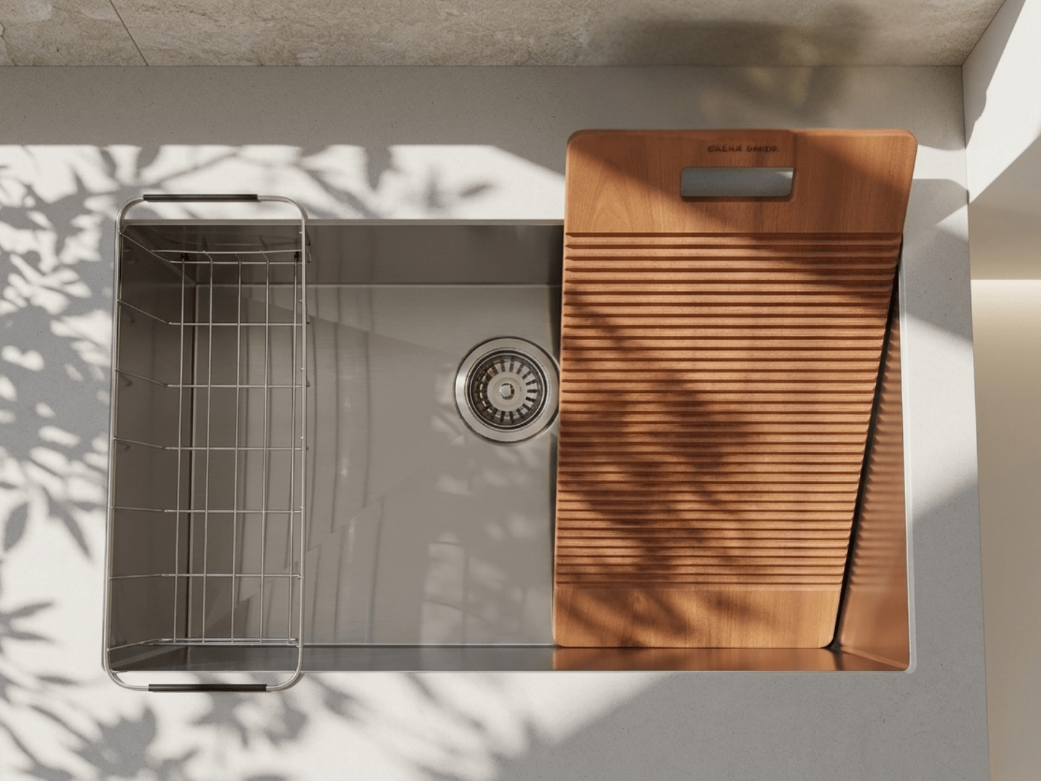 Seu modelo de embutir permite uma instalação nivelada à bancada, proporcionando um visual mais limpo, elegante e integrado ao ambiente.