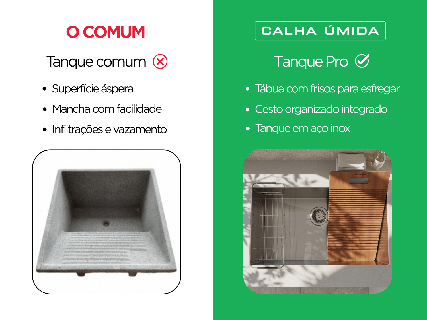 Com design moderno e acabamento escovado, o tanque é perfeito para compor ambientes funcionais, garantindo mais organização e eficiência no uso diário.