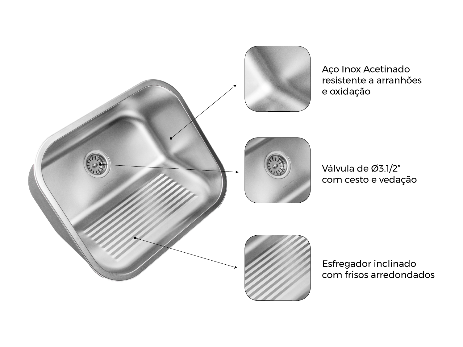 O Tanque Monobloco Calha Úmida em Aço Inox Acetinado é a escolha perfeita para