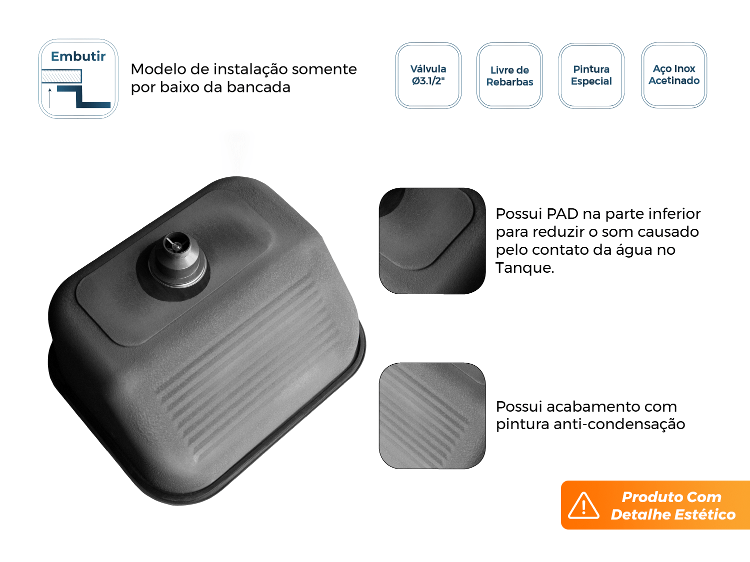 Com um design moderno e elegante, este tanque é fabricado em Aço Inoxidável