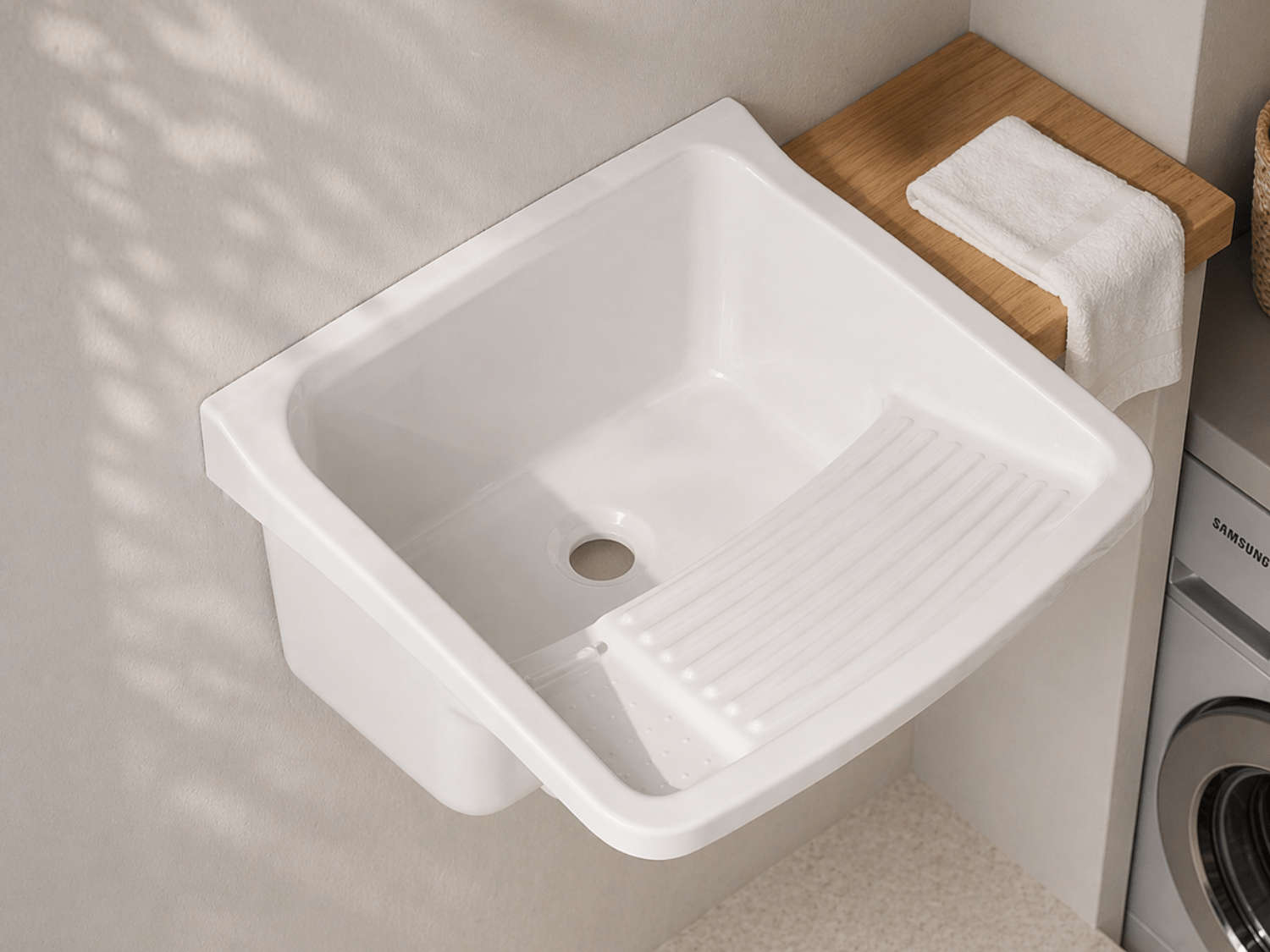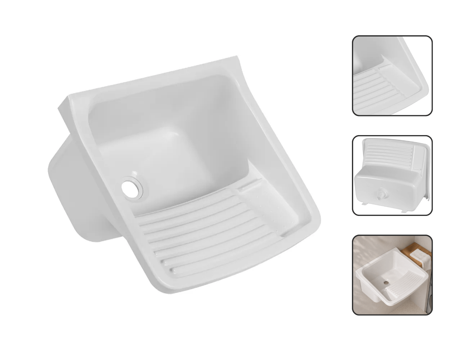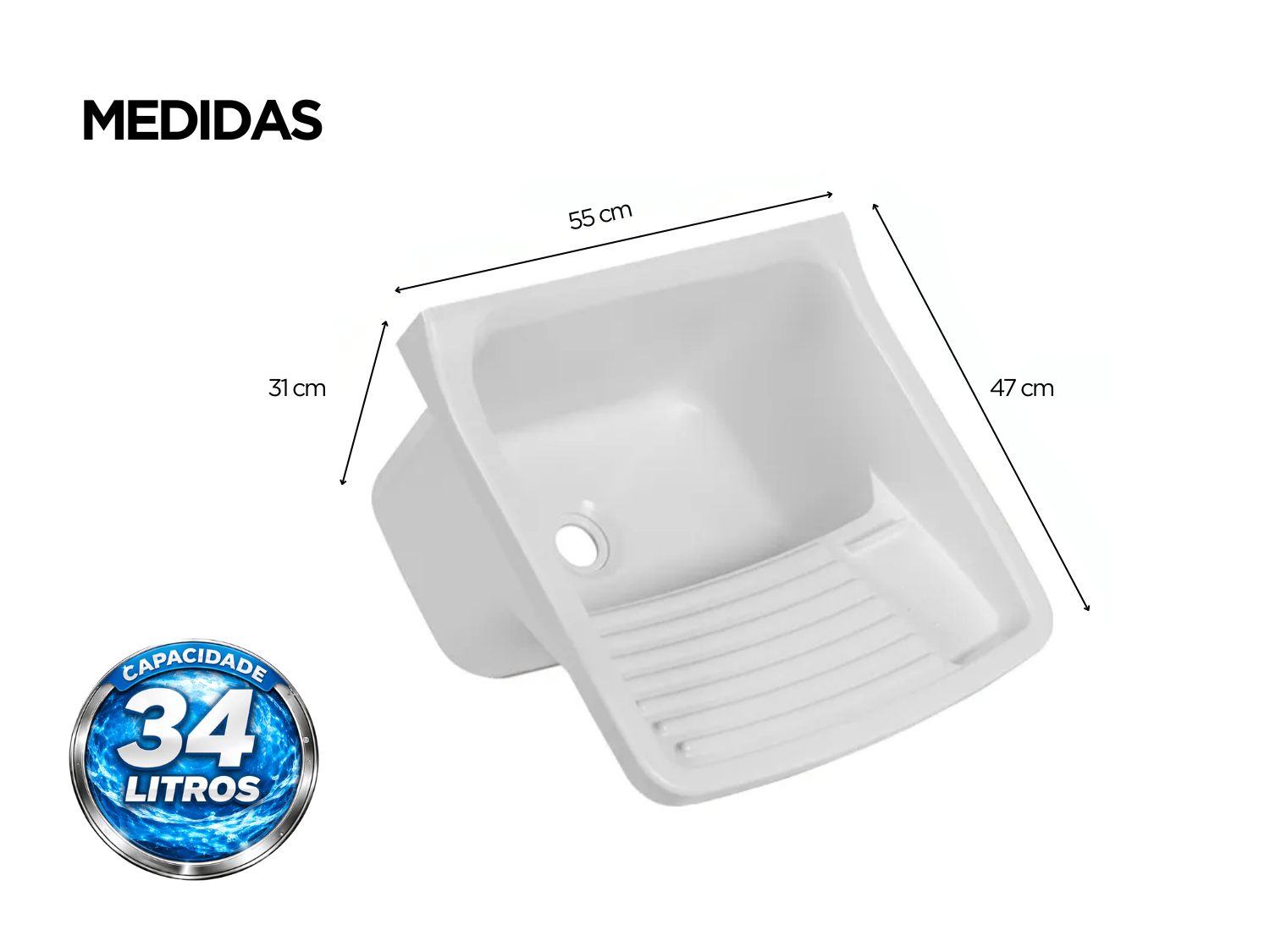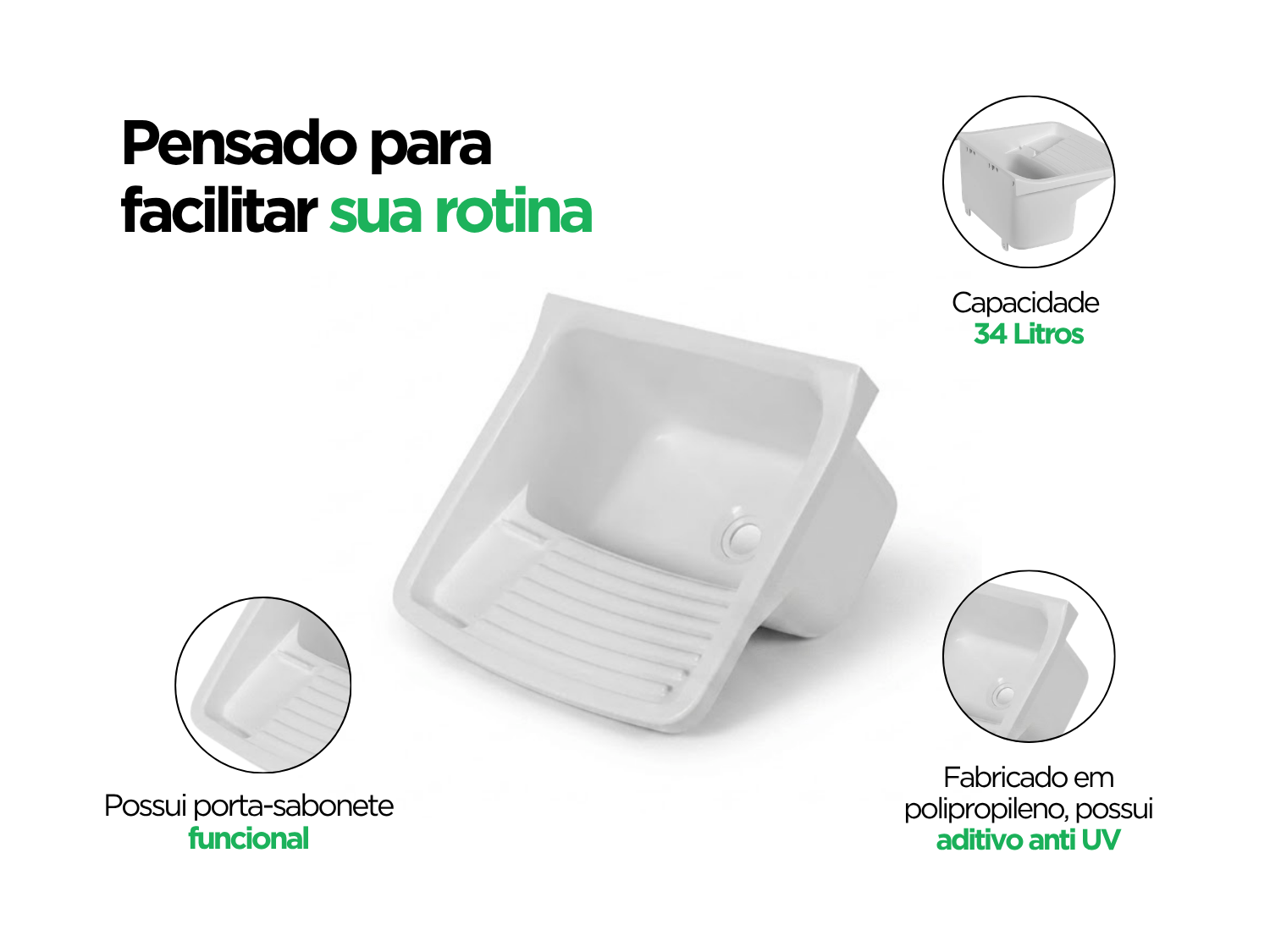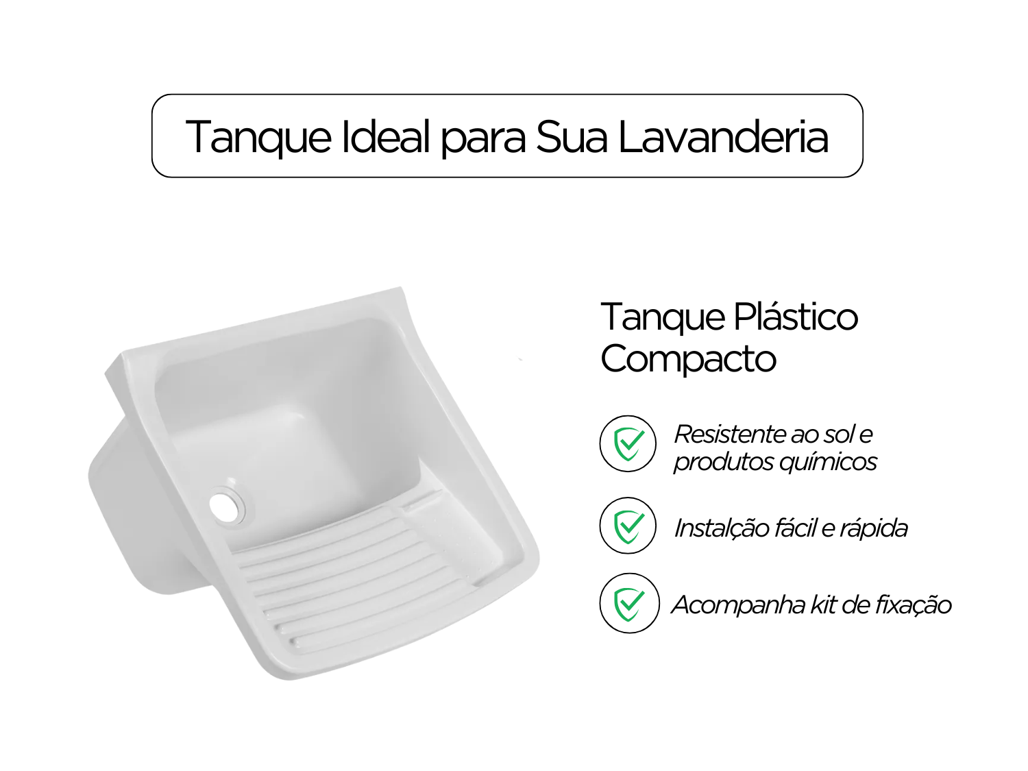 Com acabamento na cor branca, o tanque proporciona um visual clean e versátil, combinando facilmente com diferentes estilos de lavanderia.
