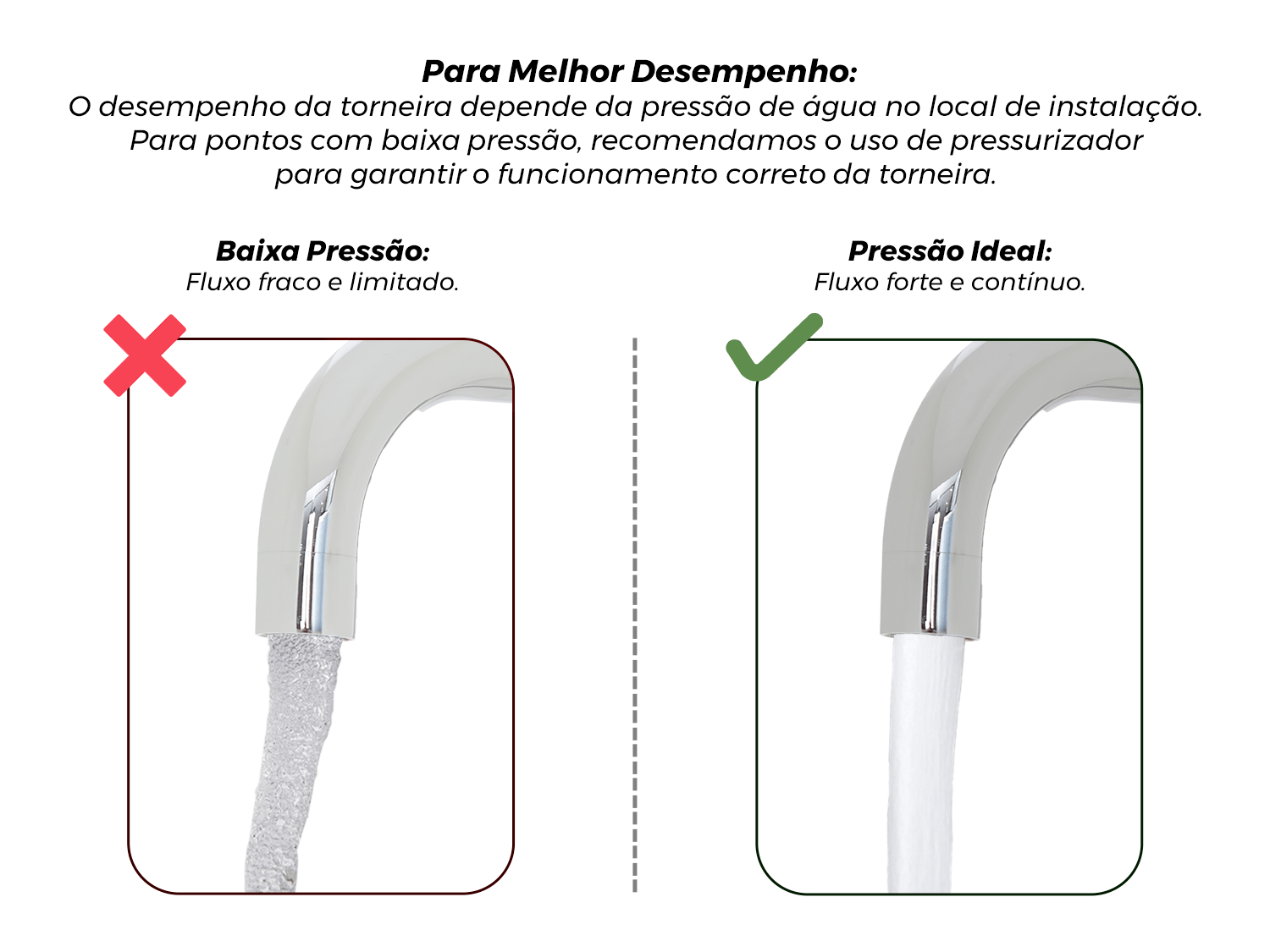 Bom dia Marcos, como vai?! Recomendamos que tenha pressão 5 a 40 mca. Havendo alguma dúvida não deixe de nos perguntar, estamos aqui para melhor lhe atender. Aguardamos sua compra - Atenciosamente, Gabriela - Equipe Calha Úmida