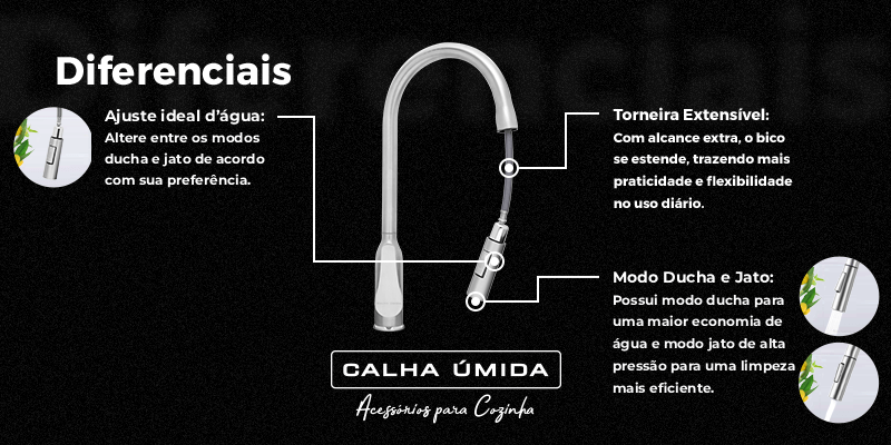 nas tarefas diária, ideal para facilitar o uso em pias de diferentes tamanhos,