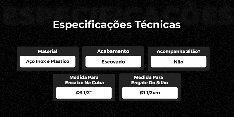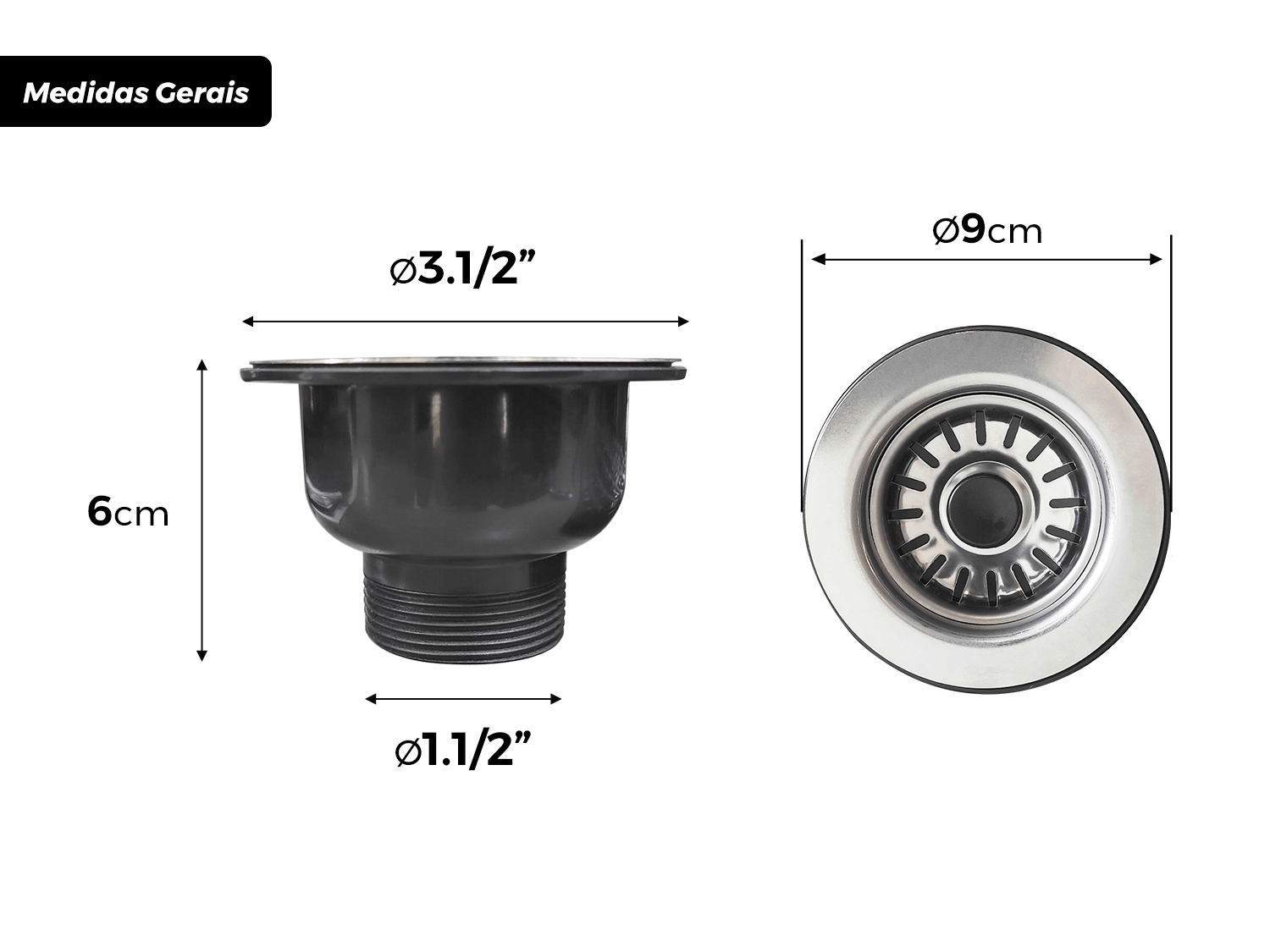 Já a saída inferior possui encaixe de Ø1.1/2", o modelo padrão utilizado em sifões,